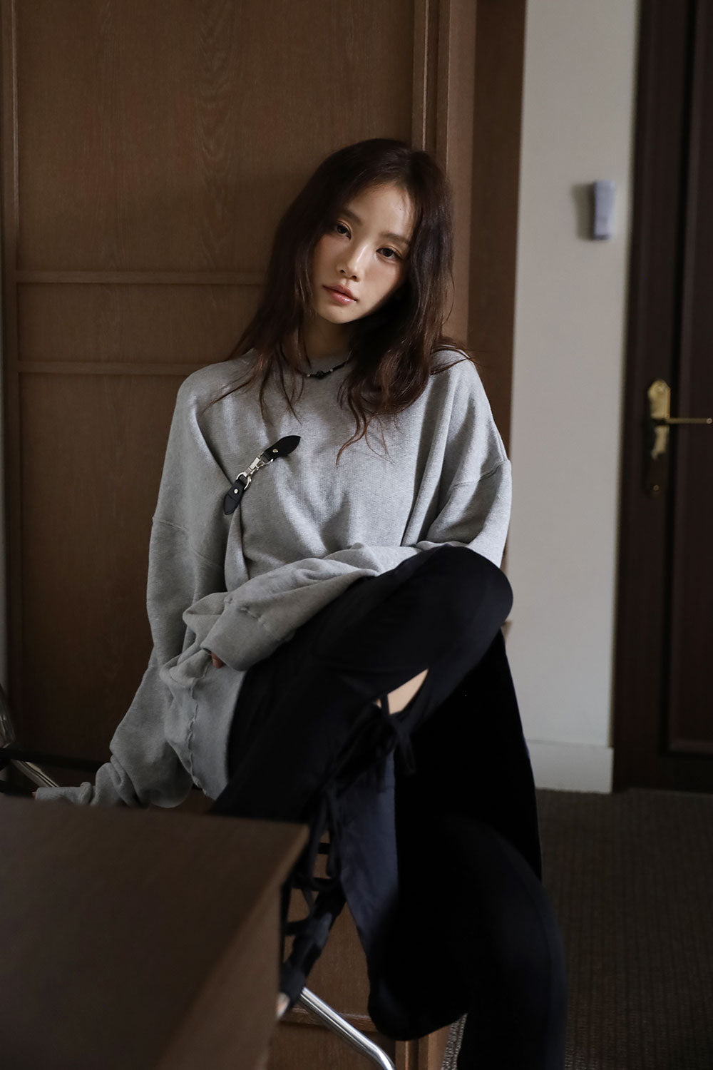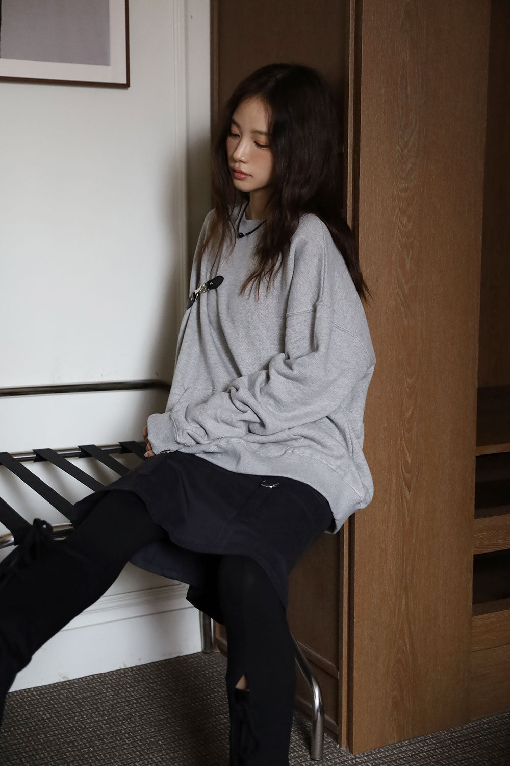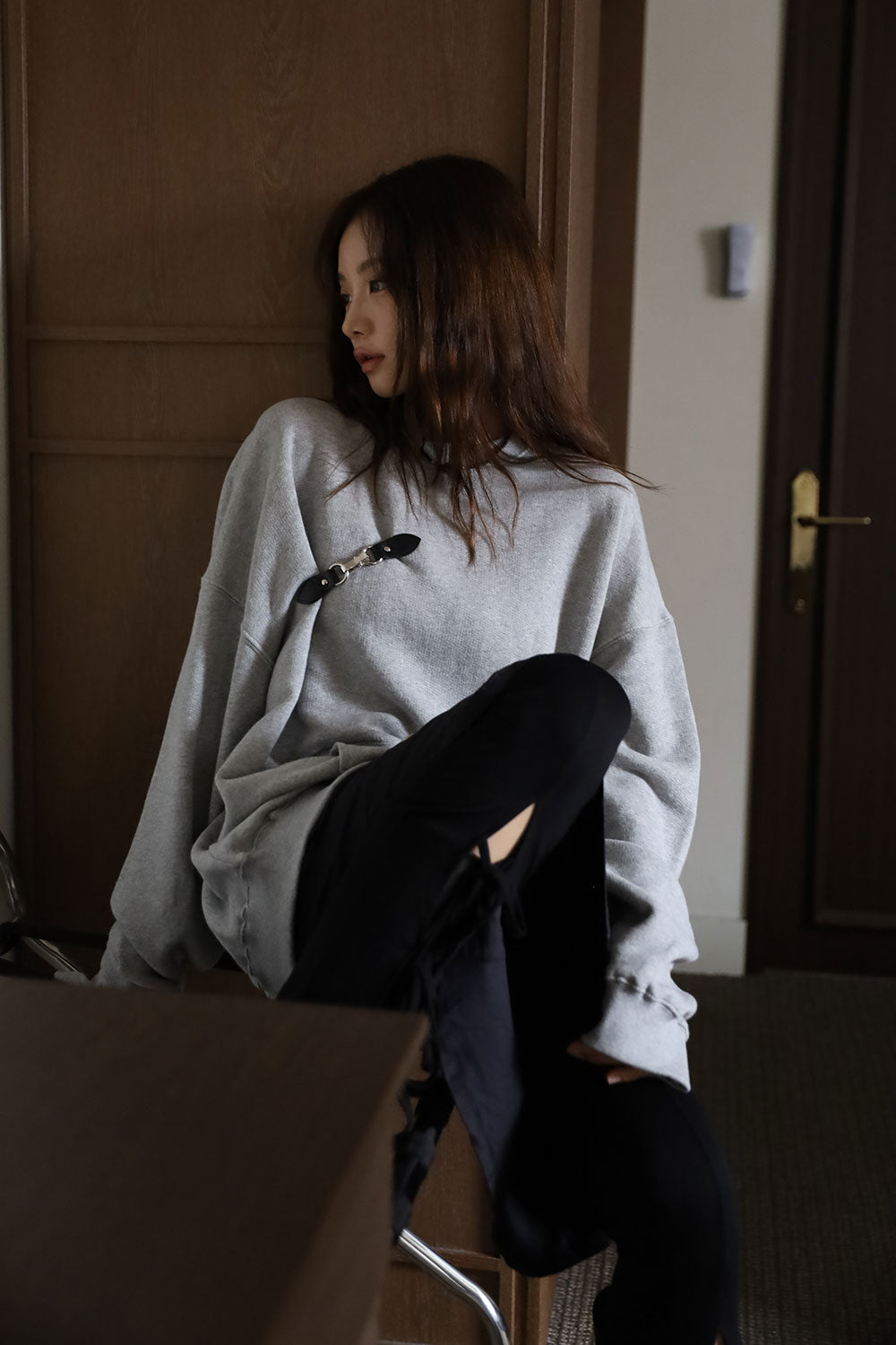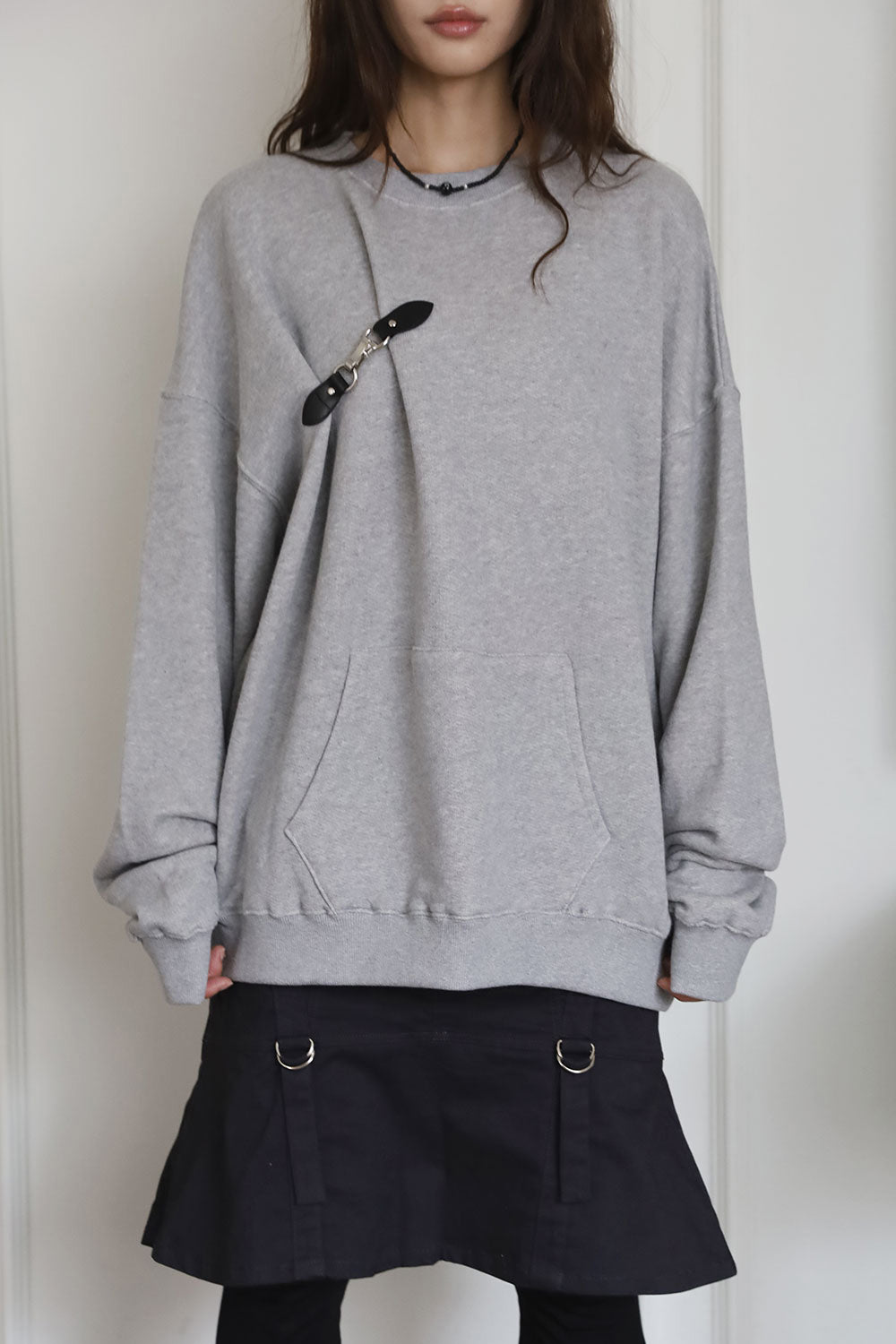 Leather Overfit Buckle Sweatshirt