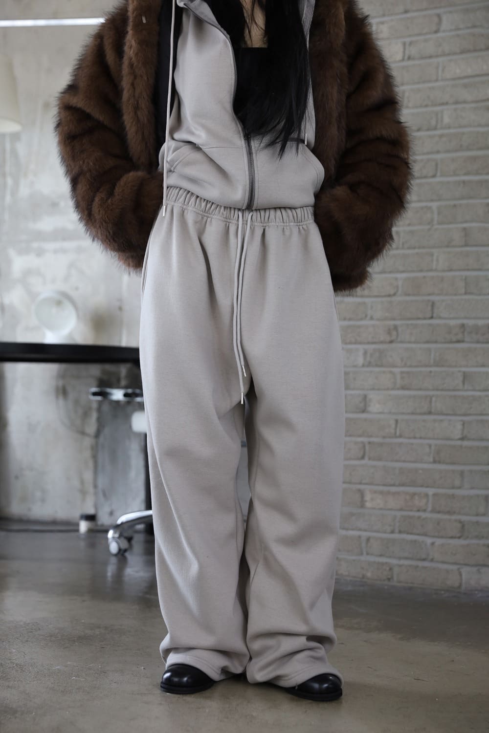 裏地ミンクファー)ポンポイージーバンディングパンツ