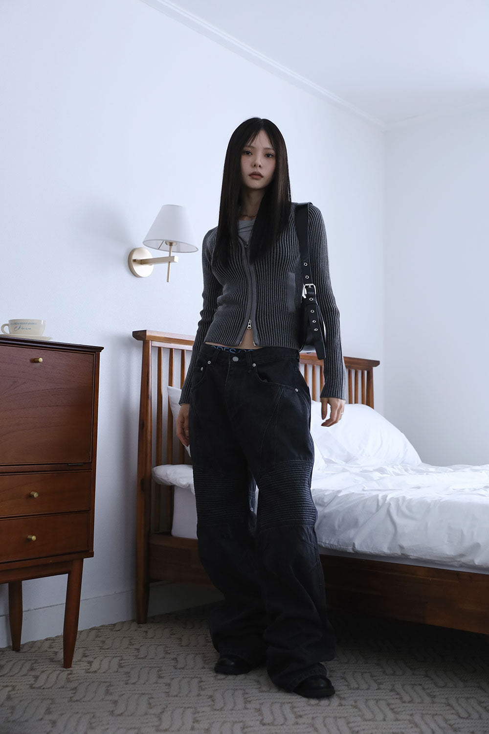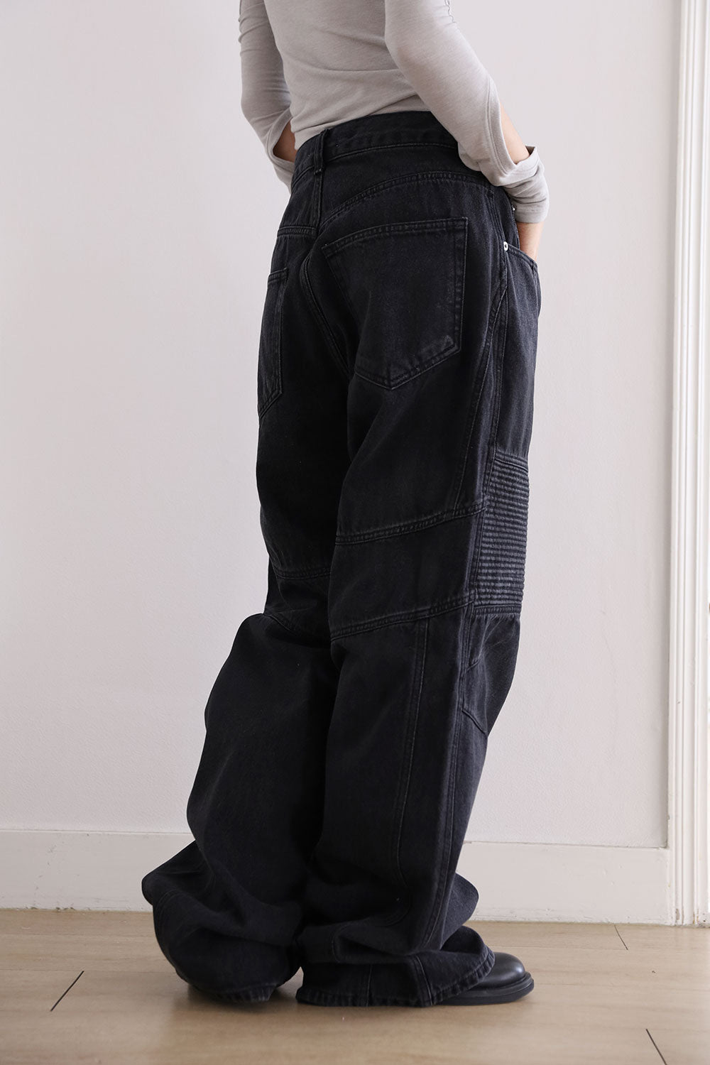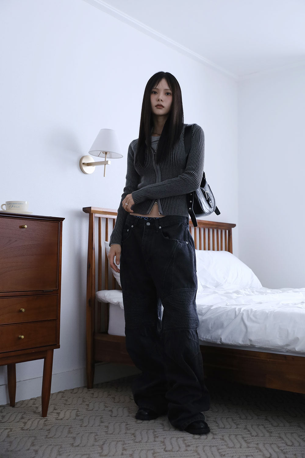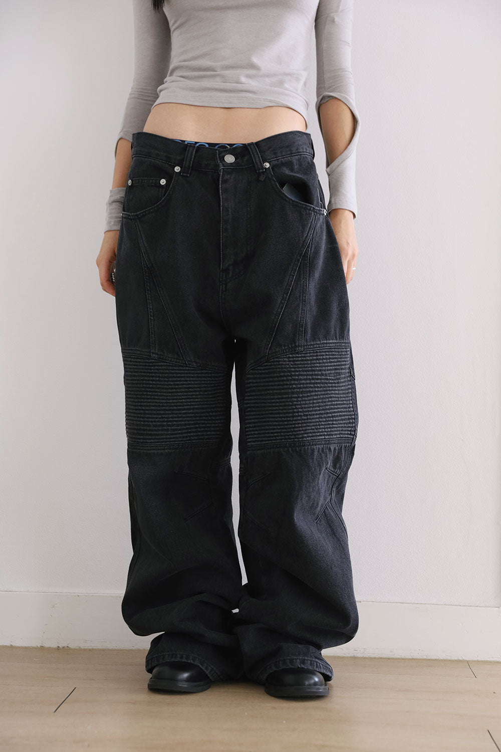 −M (ウエスト78 ヒップ131 股上34.5 股下81.5 もも周り66 裾周り56 総丈116)
