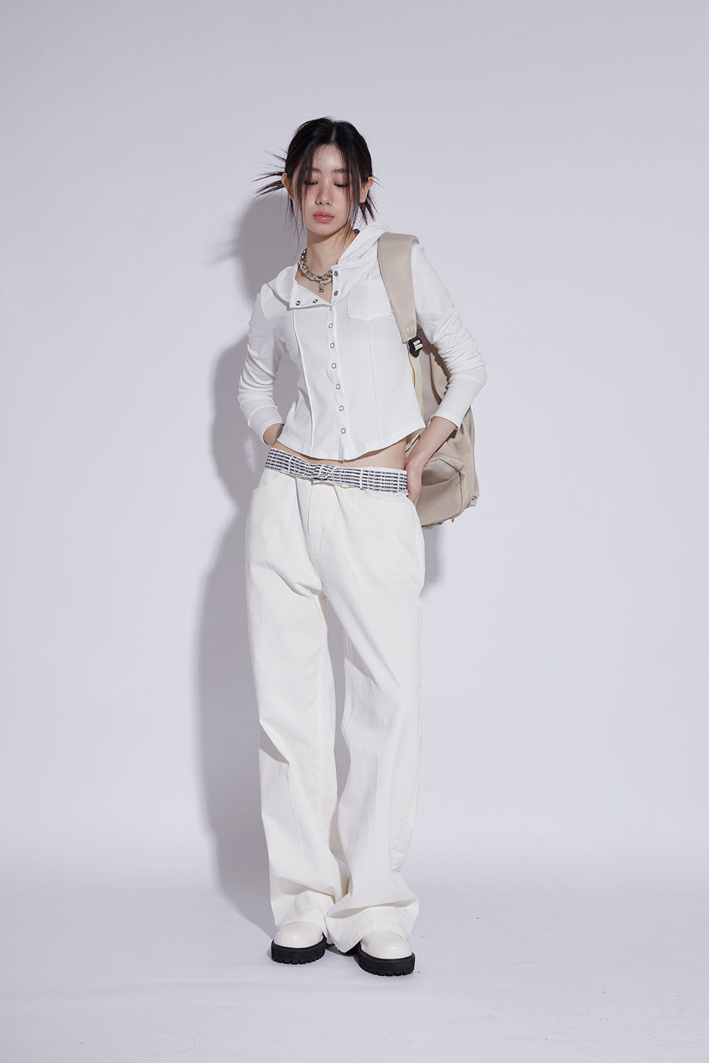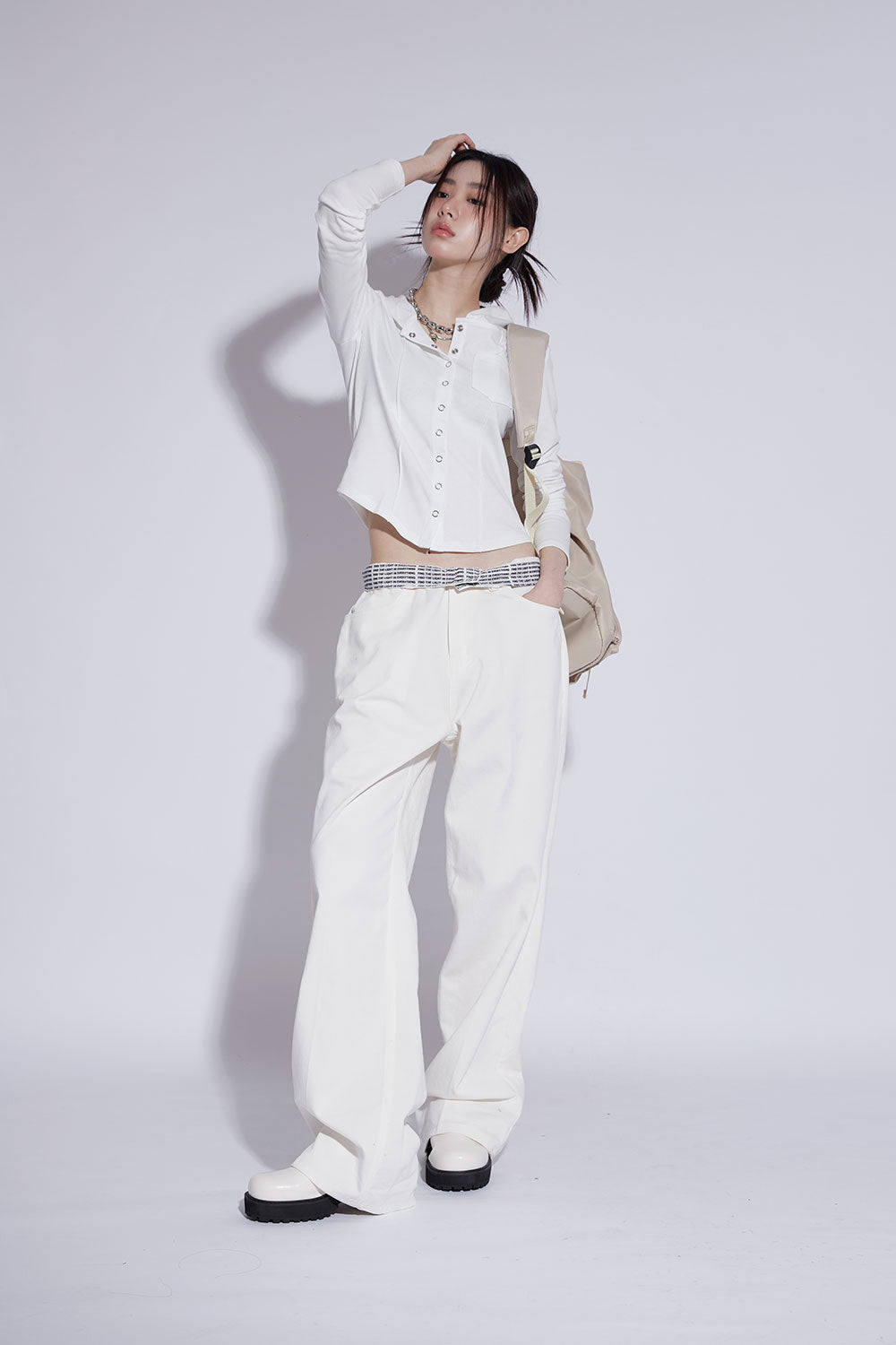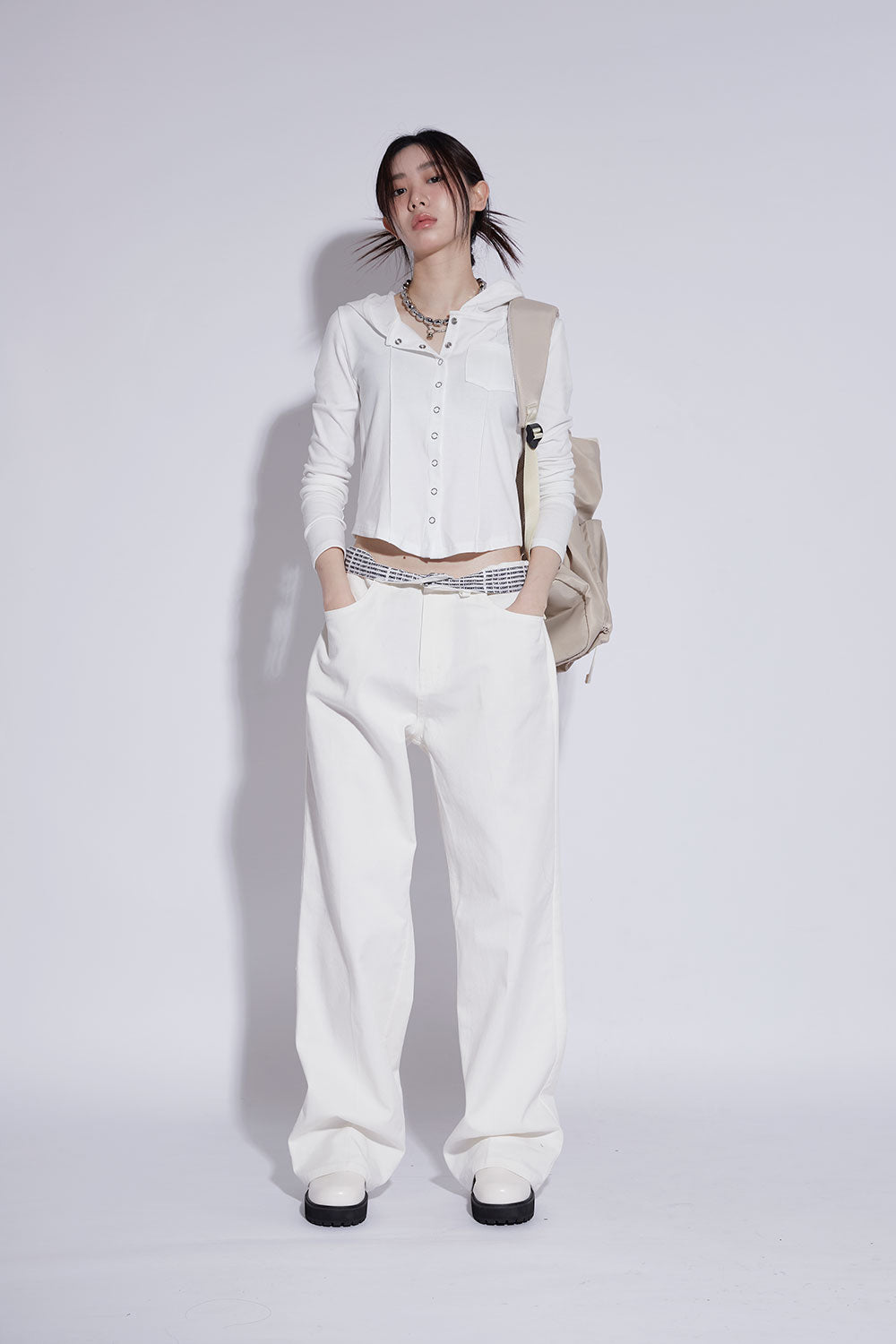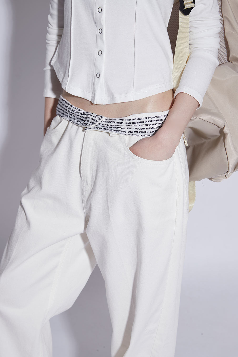−M (ウエスト75 ヒップ104 股上31.5 股下74 もも周り57 裾周り49 総丈105.5)