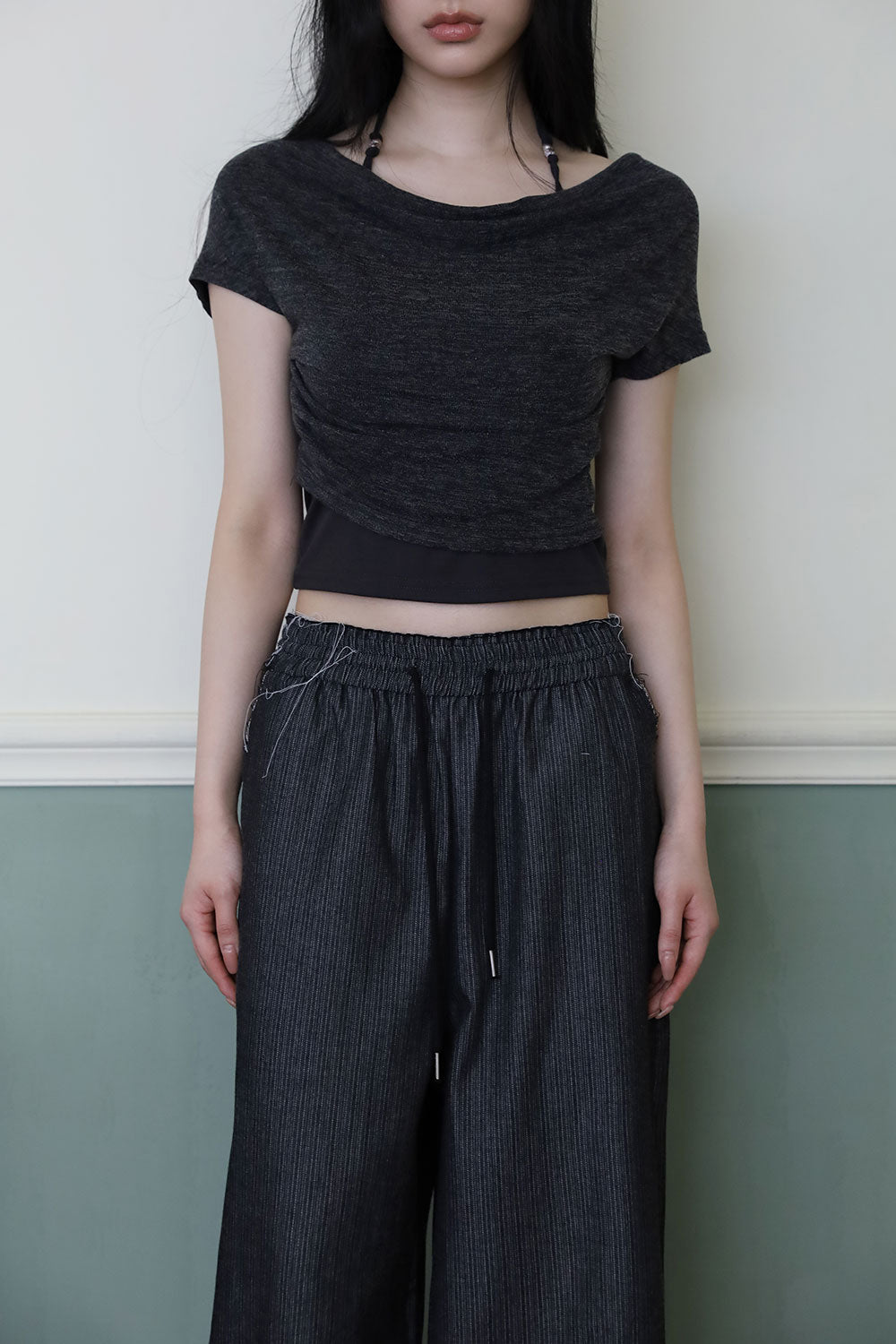 Off-Layer Shirring Halter Top