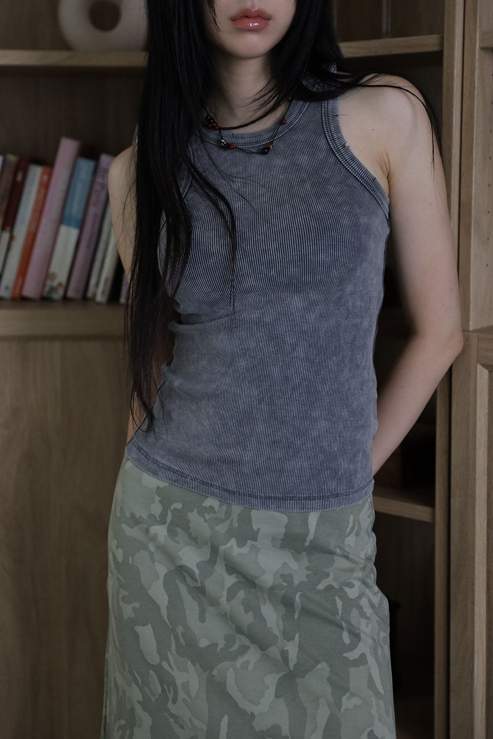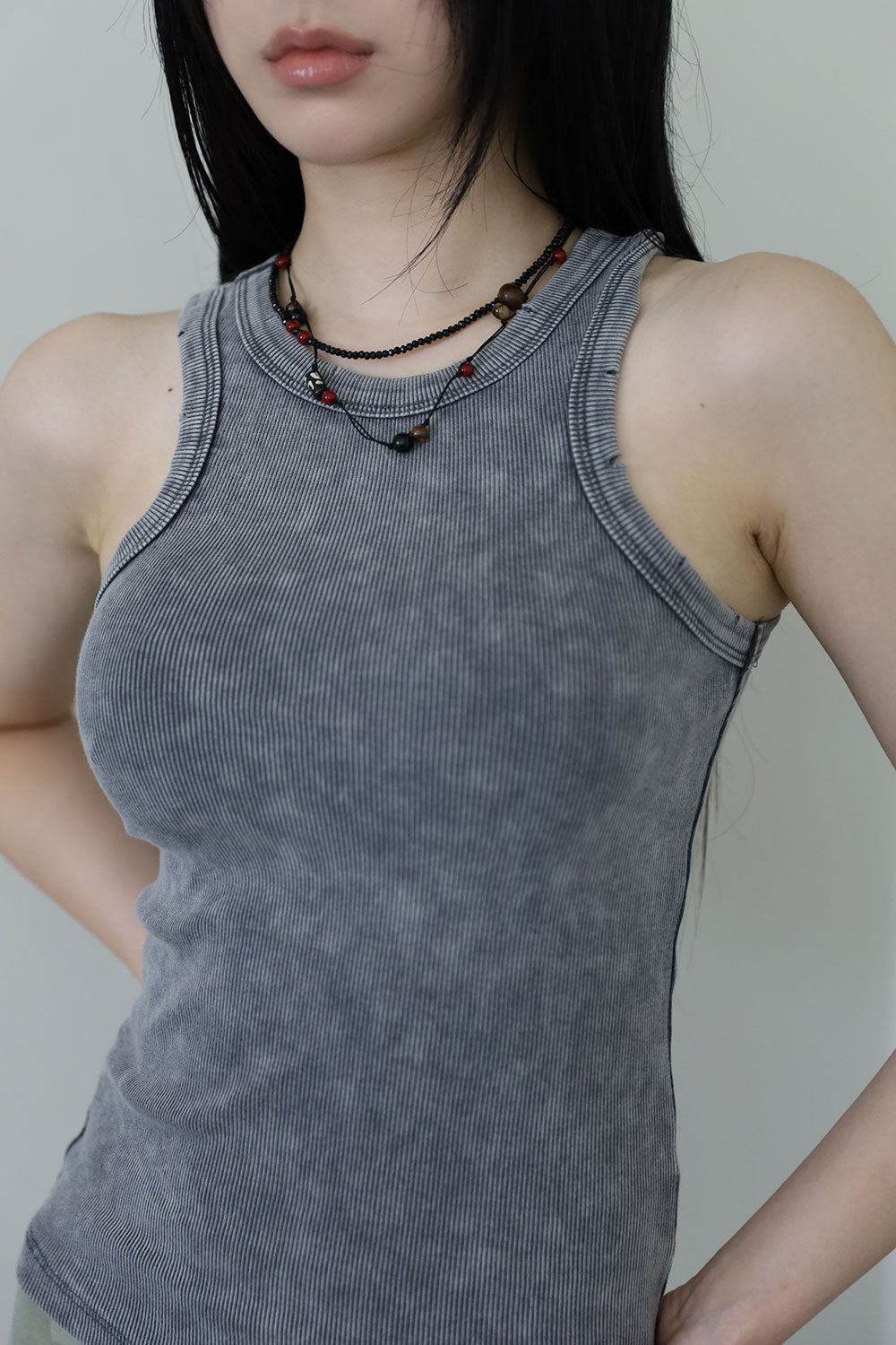 ピグメントウォッシュ加工リブタンクトップ