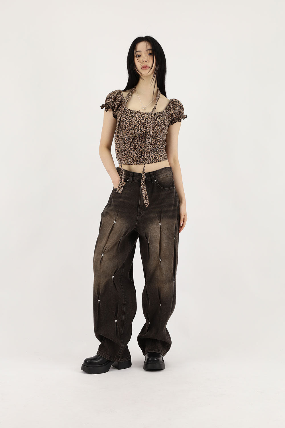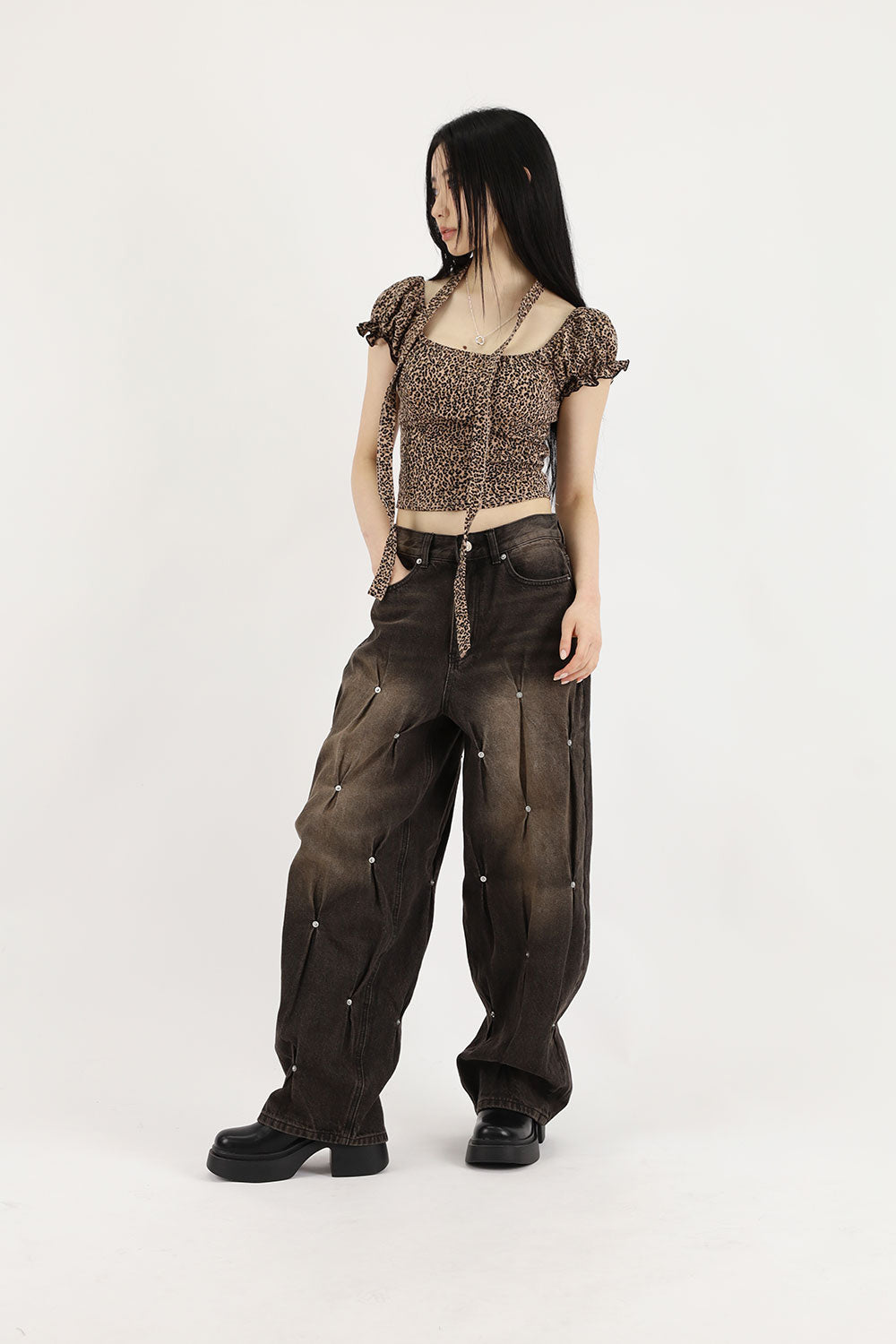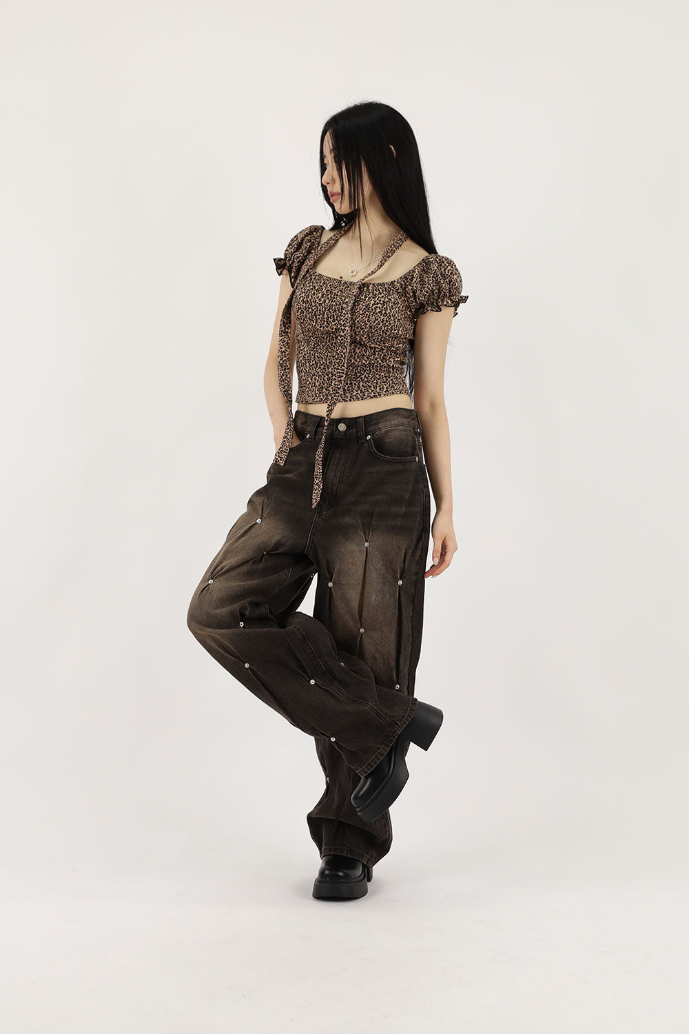 Puff leopard scarf tee