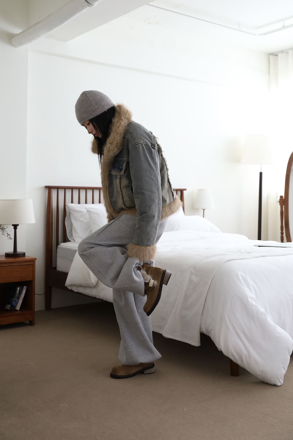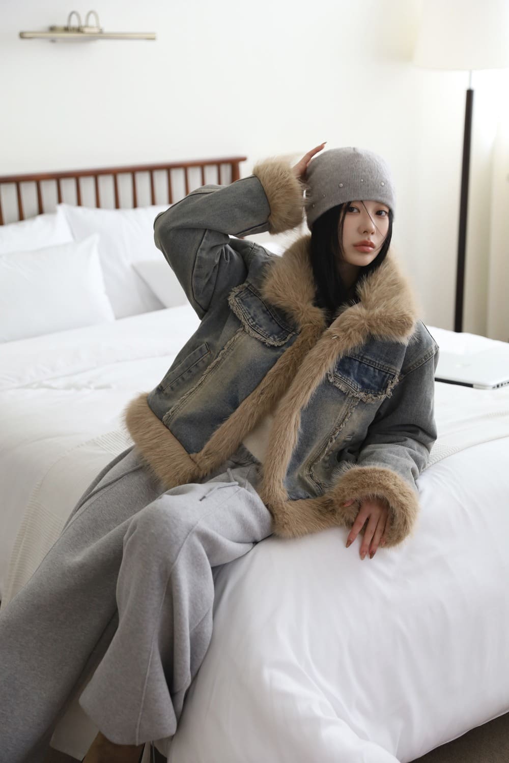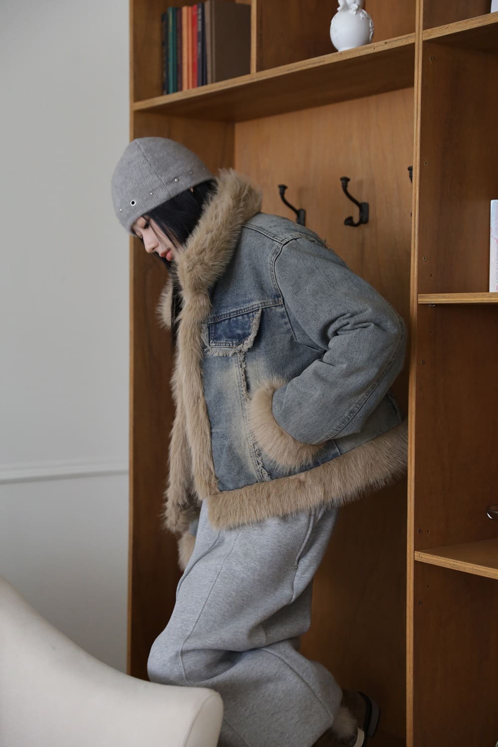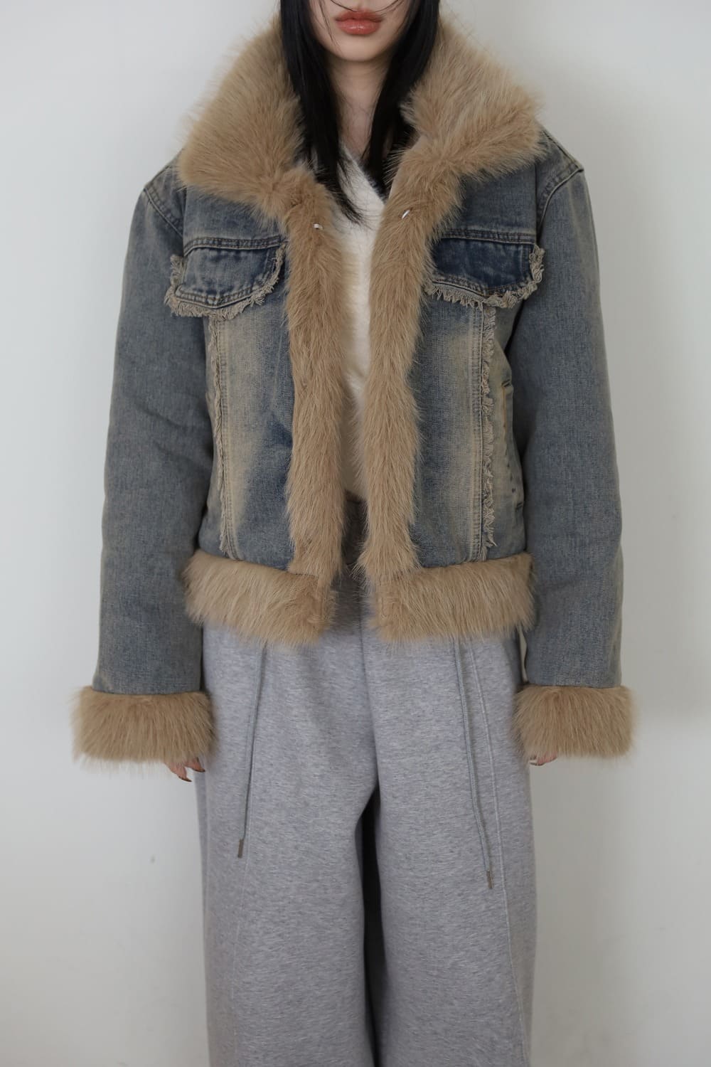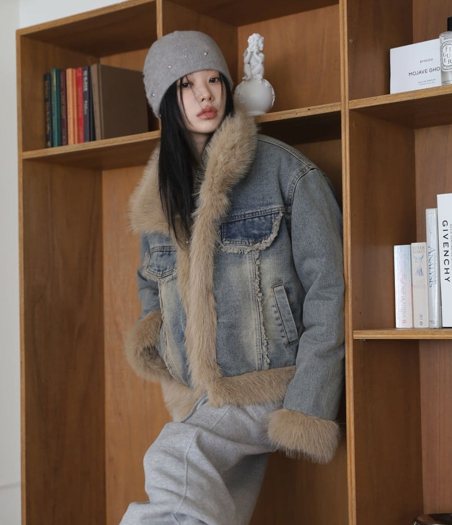 Quilted Lining) Earth Fur Denim Jacket