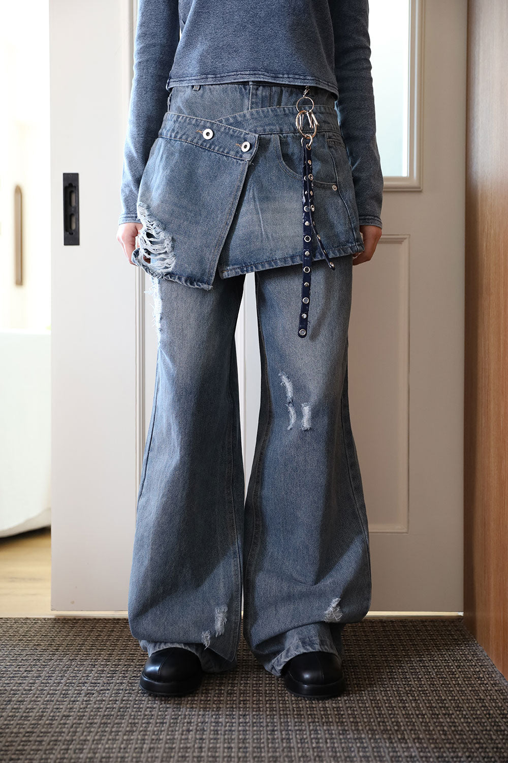 -L (ウエスト75 ヒップ100 股上32 股下84.5 もも周り64 裾周り57 総丈116.5)