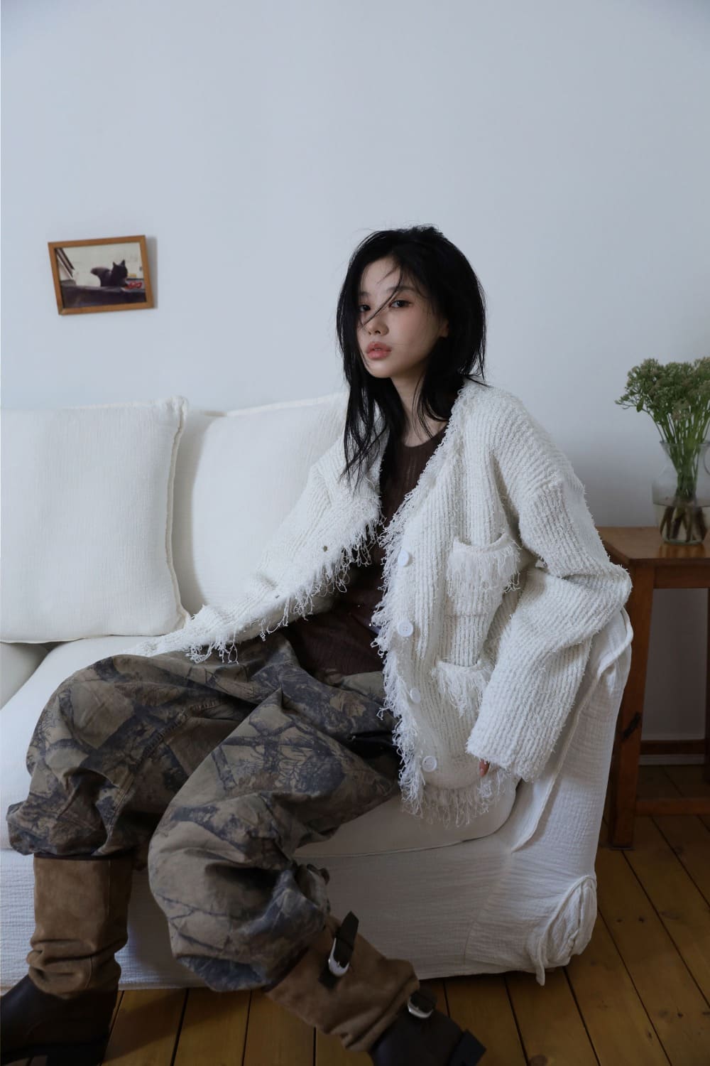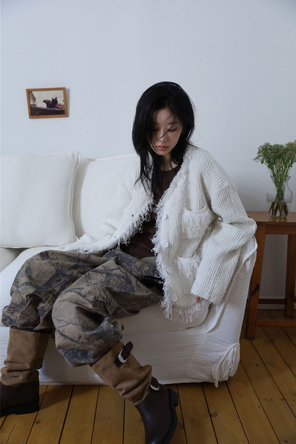 サラタッセルツイードカーディガン