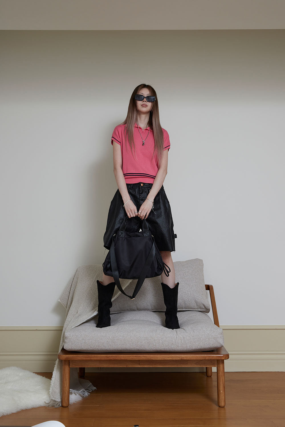 side zipper hand bag