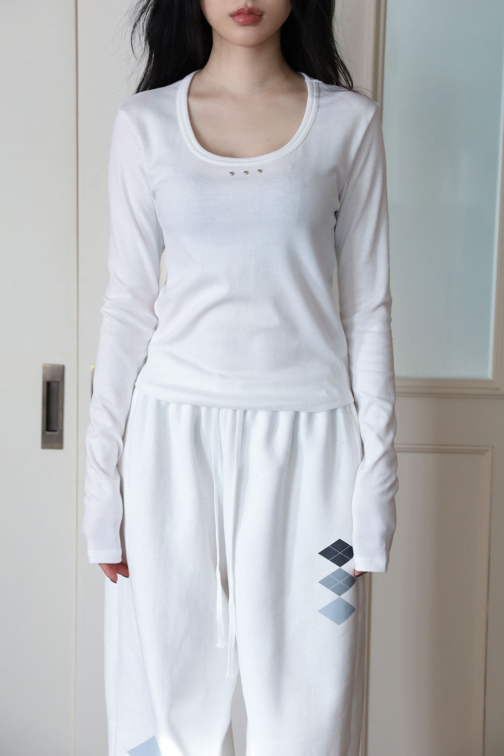 スパンスタッズUネックTシャツ