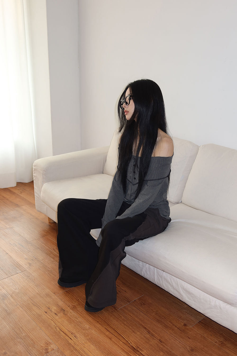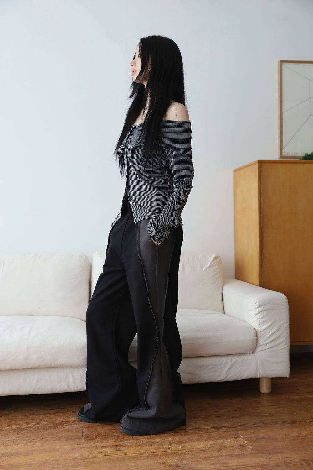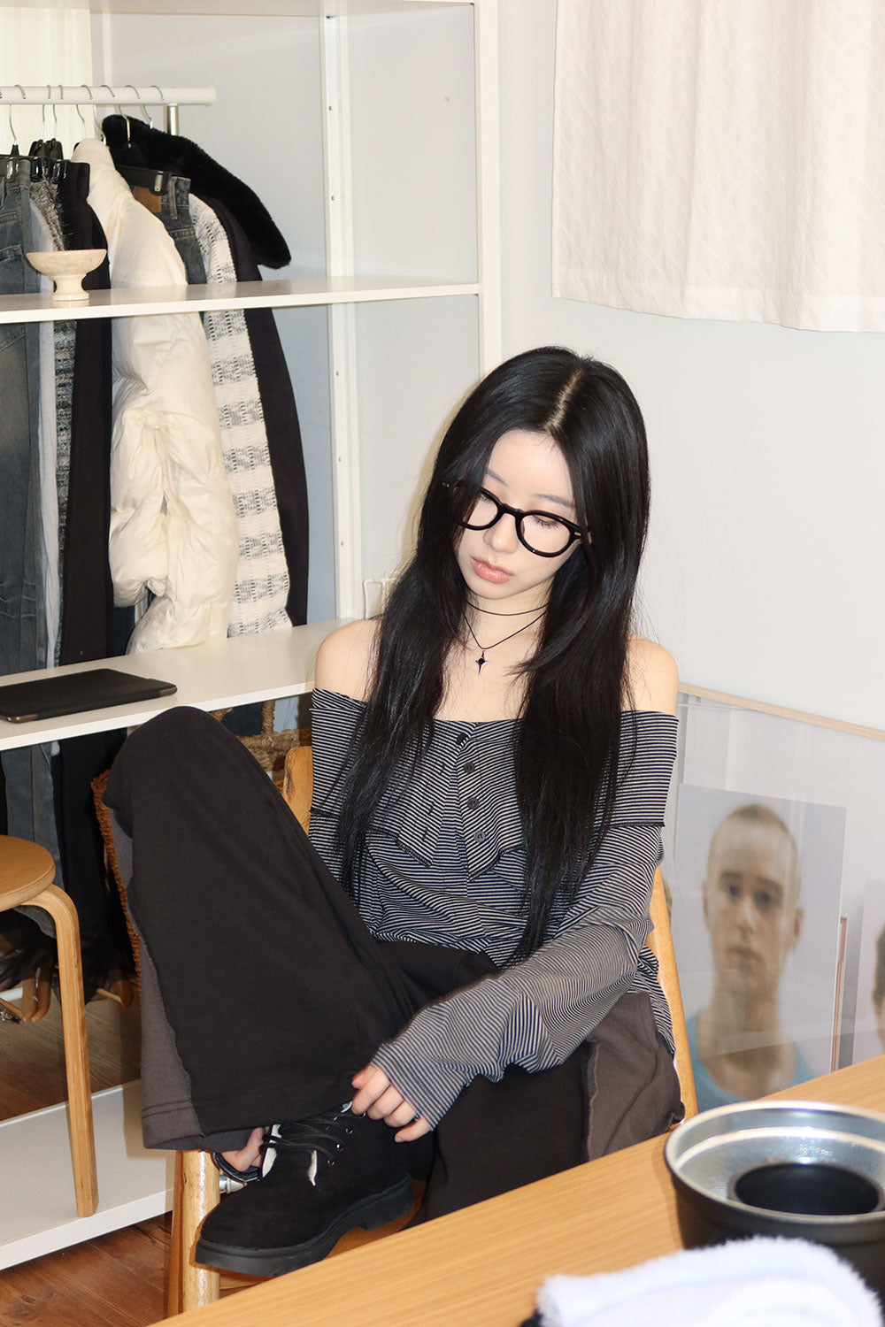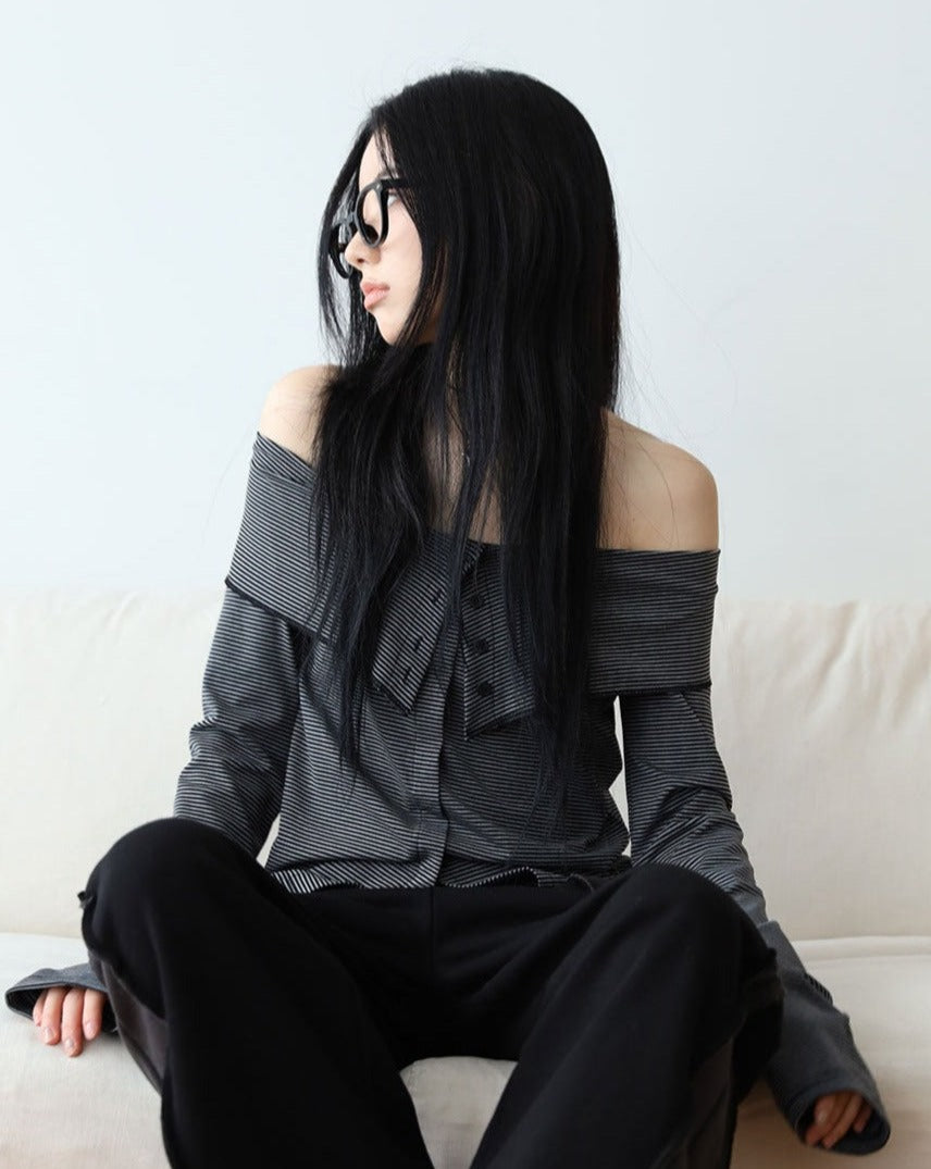 ストレートボタンオフショルダー