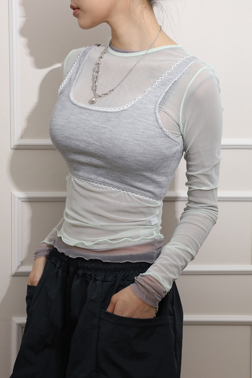 スイートレースクロップスリーブレス