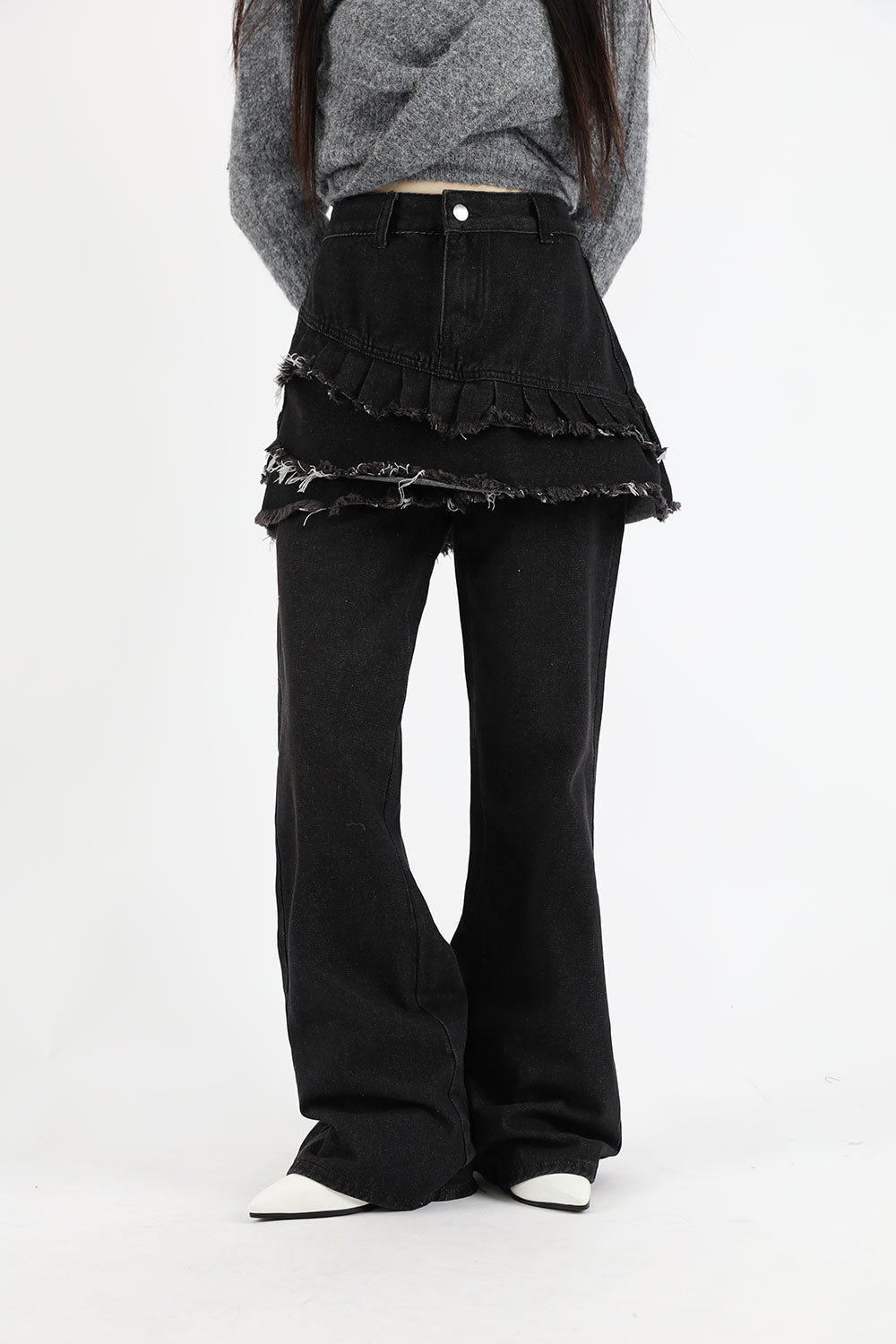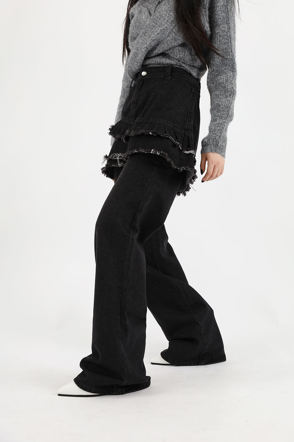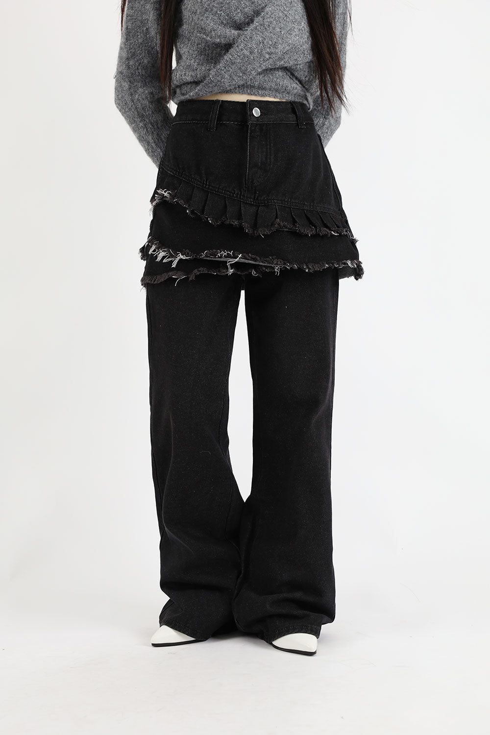 ティアードレイヤードユニークジーンズ