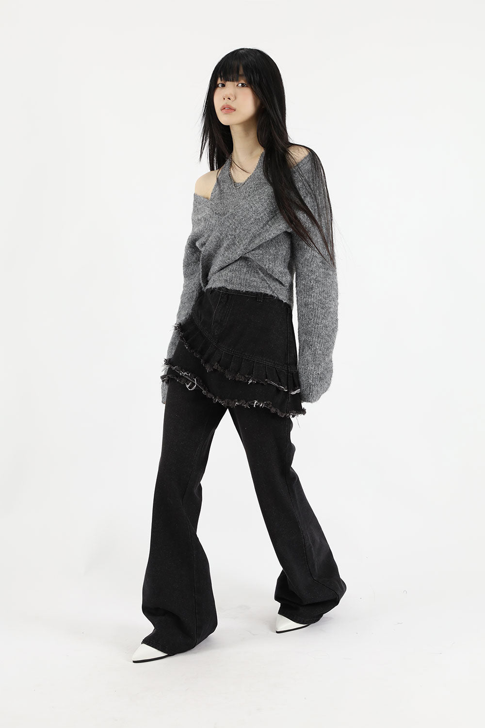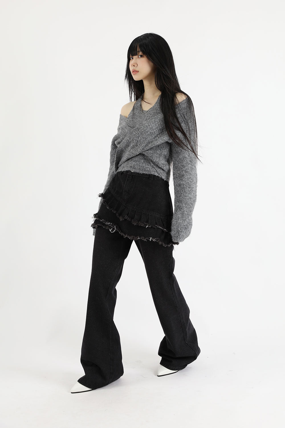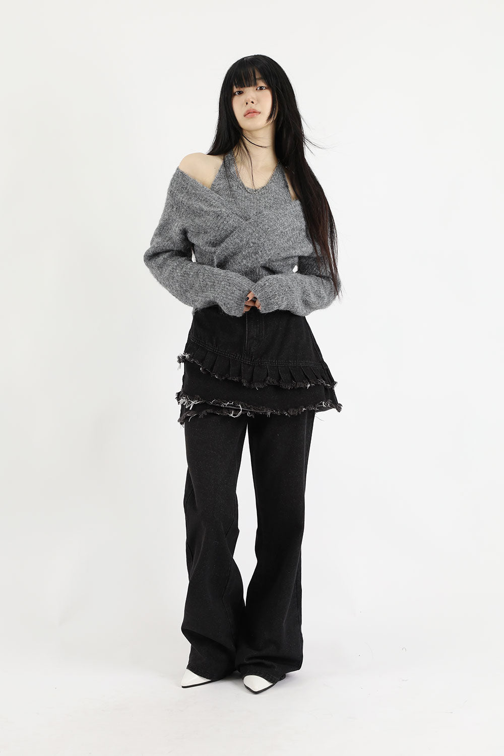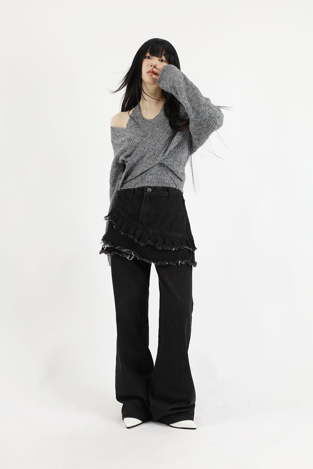 ティアードレイヤードユニークジーンズ
