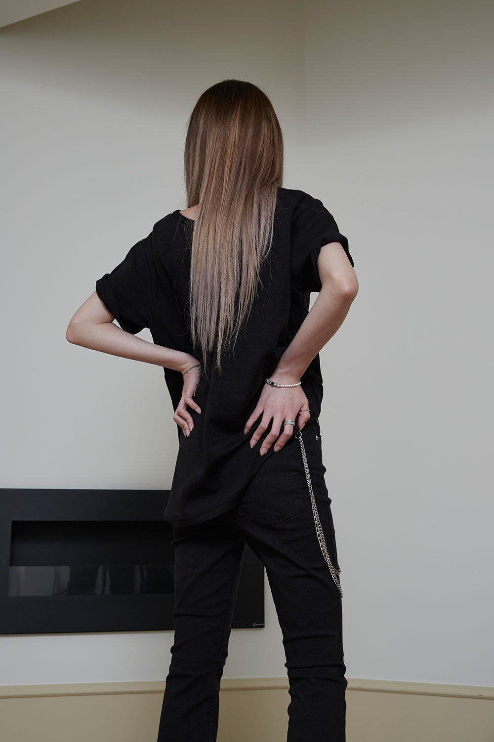−161cm / top 44 / bottom 25-26 / 235mm / Black ,Ssize着用