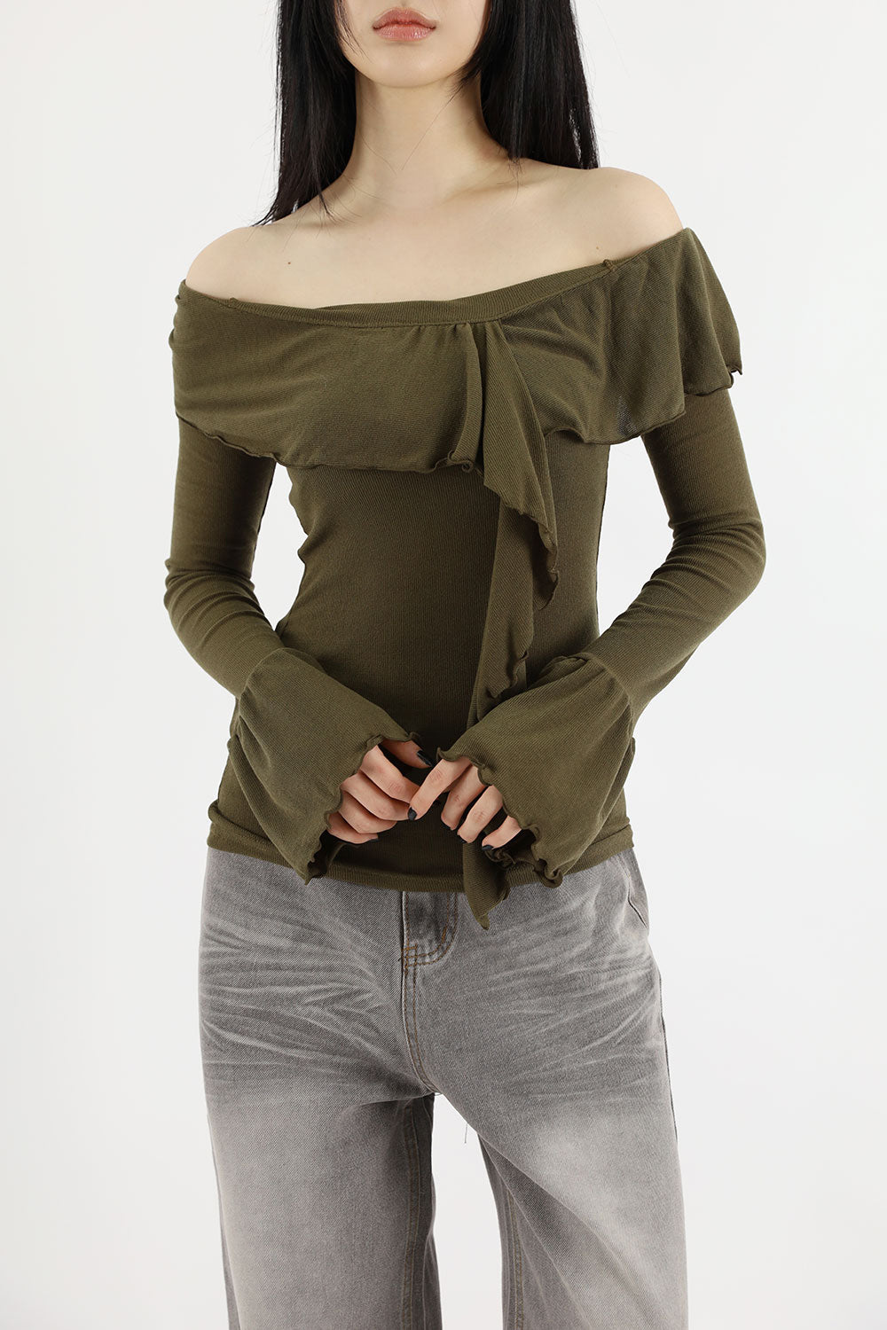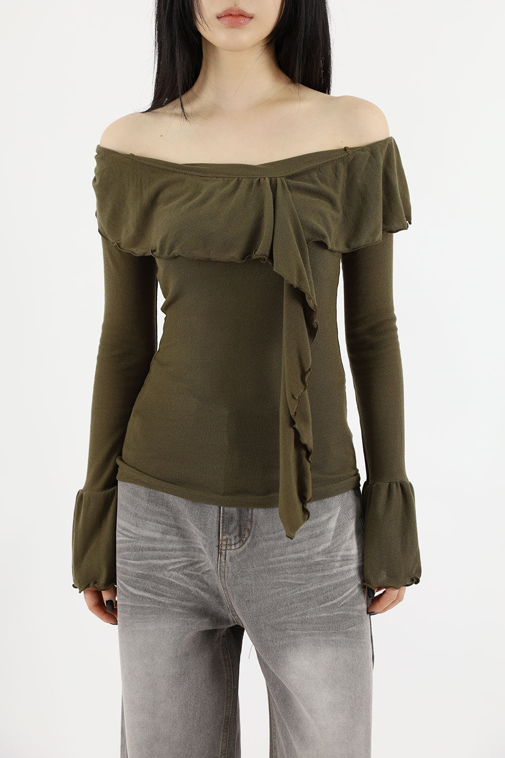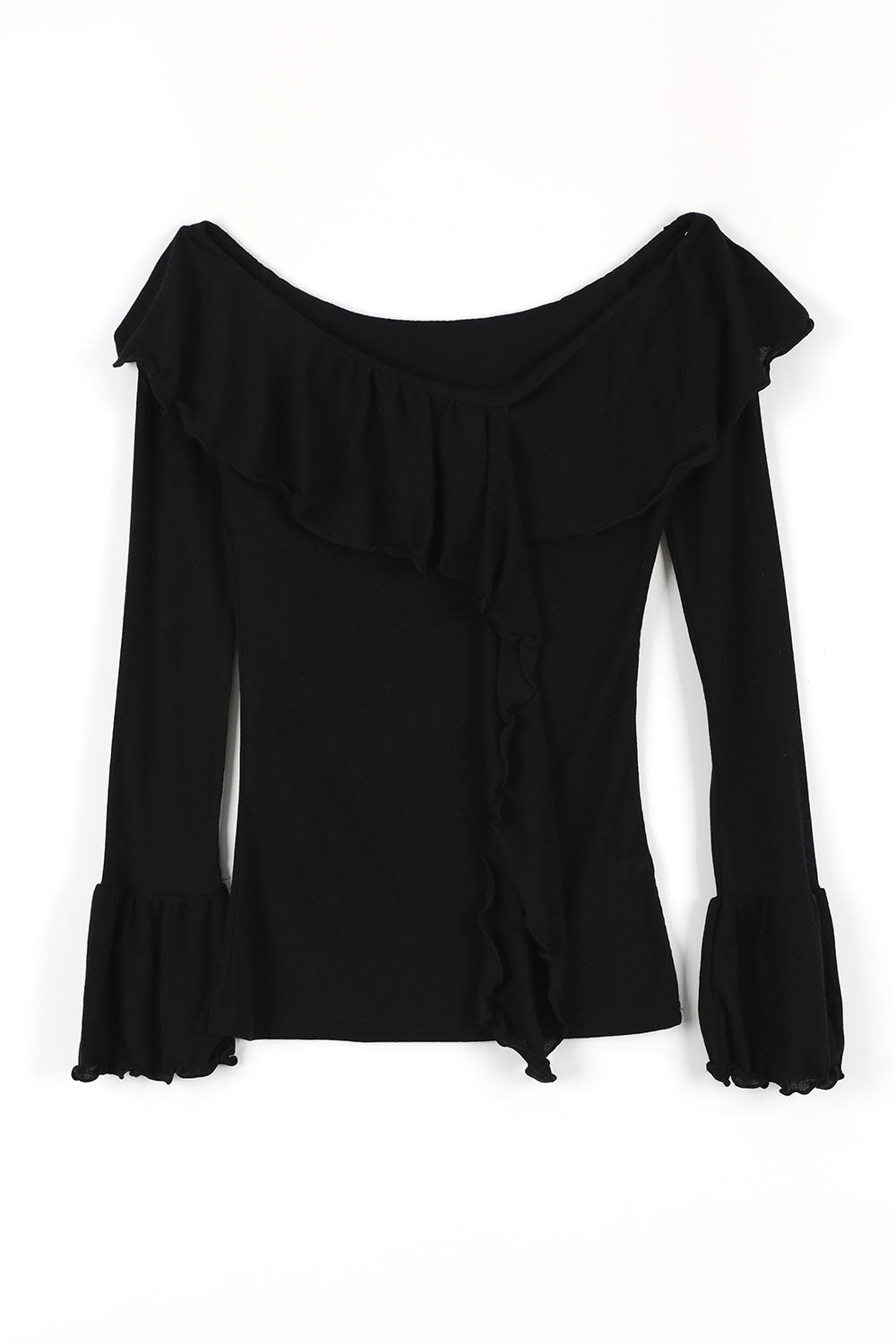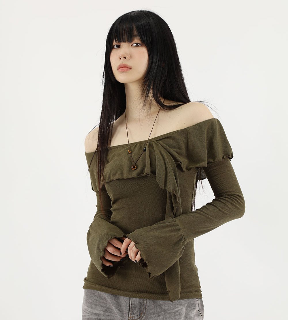 ウェーブラッフルオフショルダーTシャツ