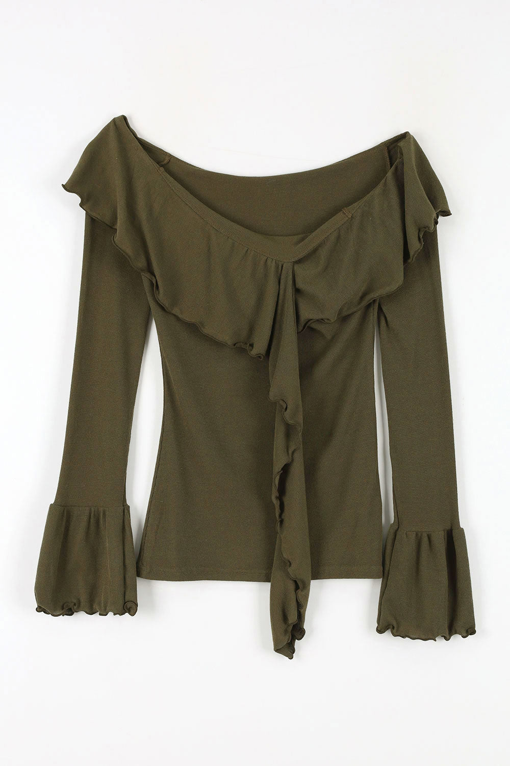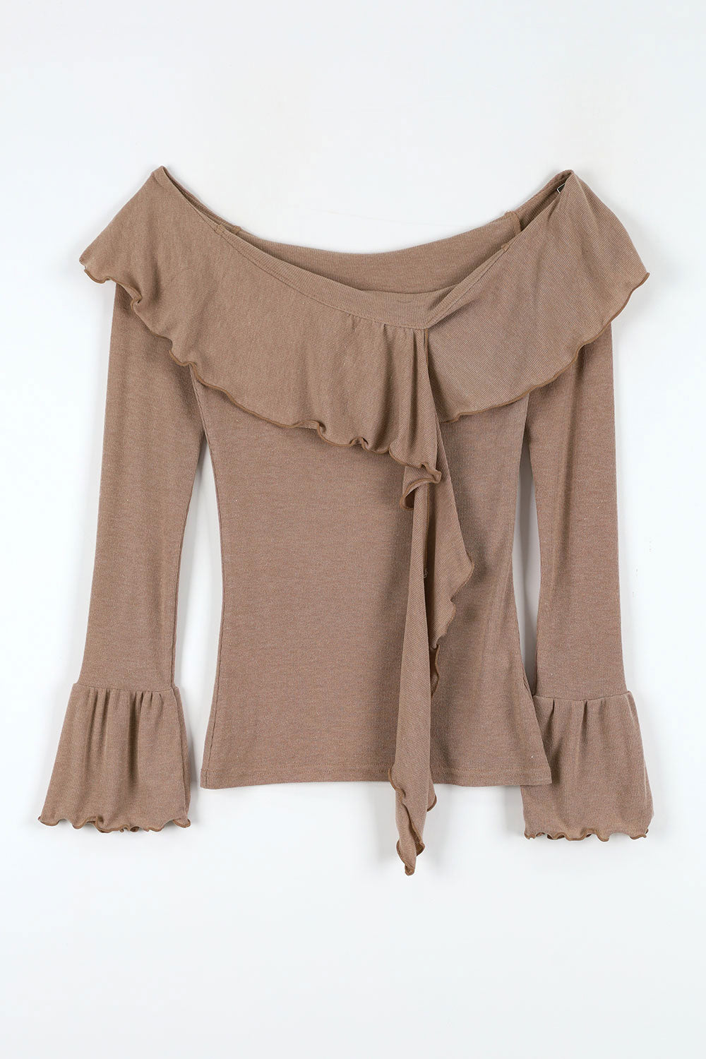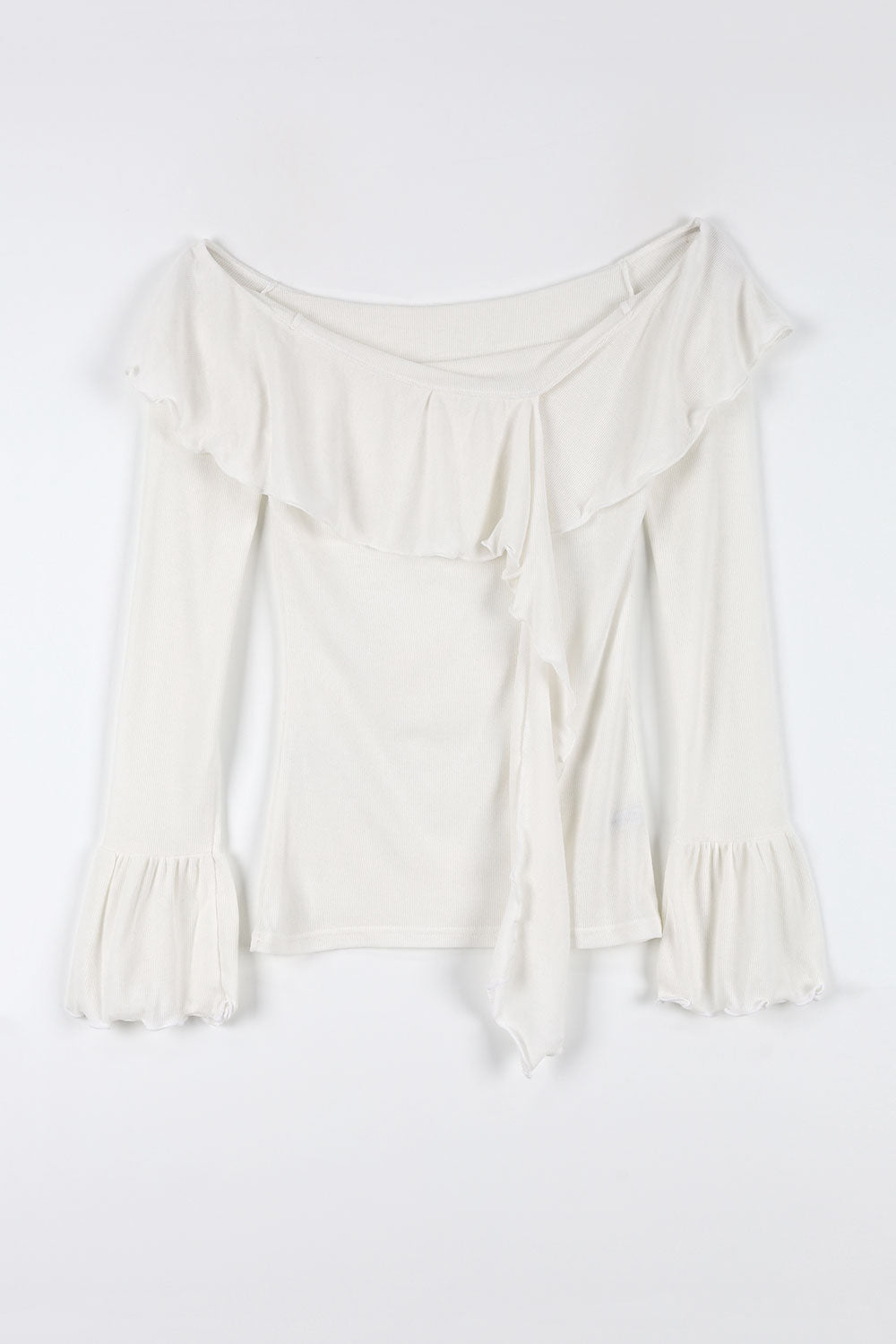 Wave ruffle off-shoulder tee