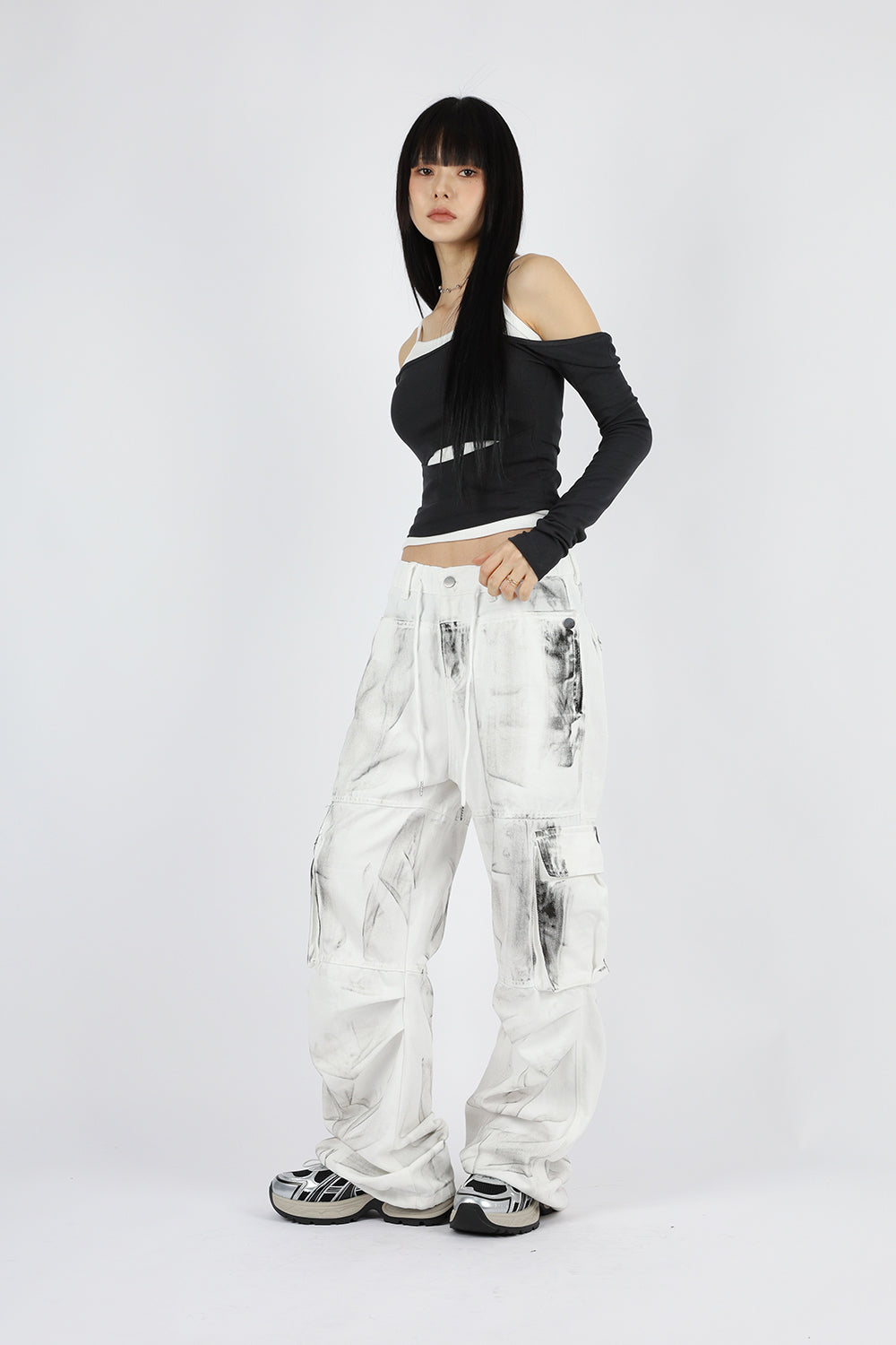 −M (ウエスト(ゴム)68-83 ヒップ102 股上32 股下75 もも周り58 裾周り52 総丈107)