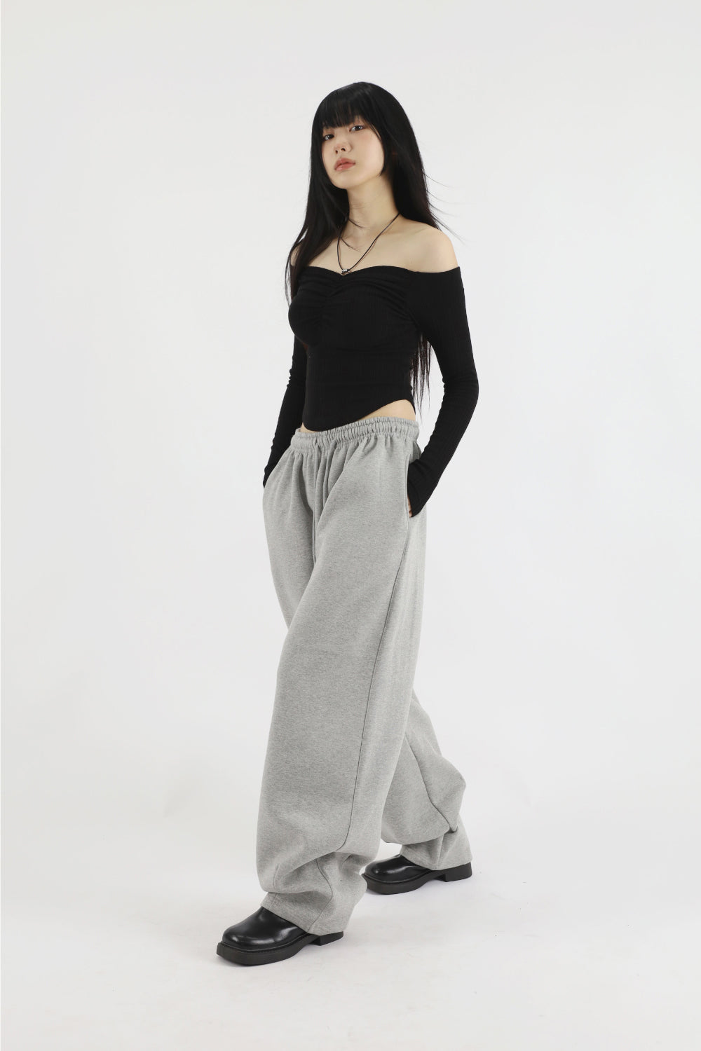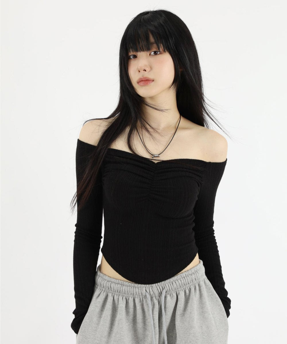 Yuje shirring crop off-shoulder tee