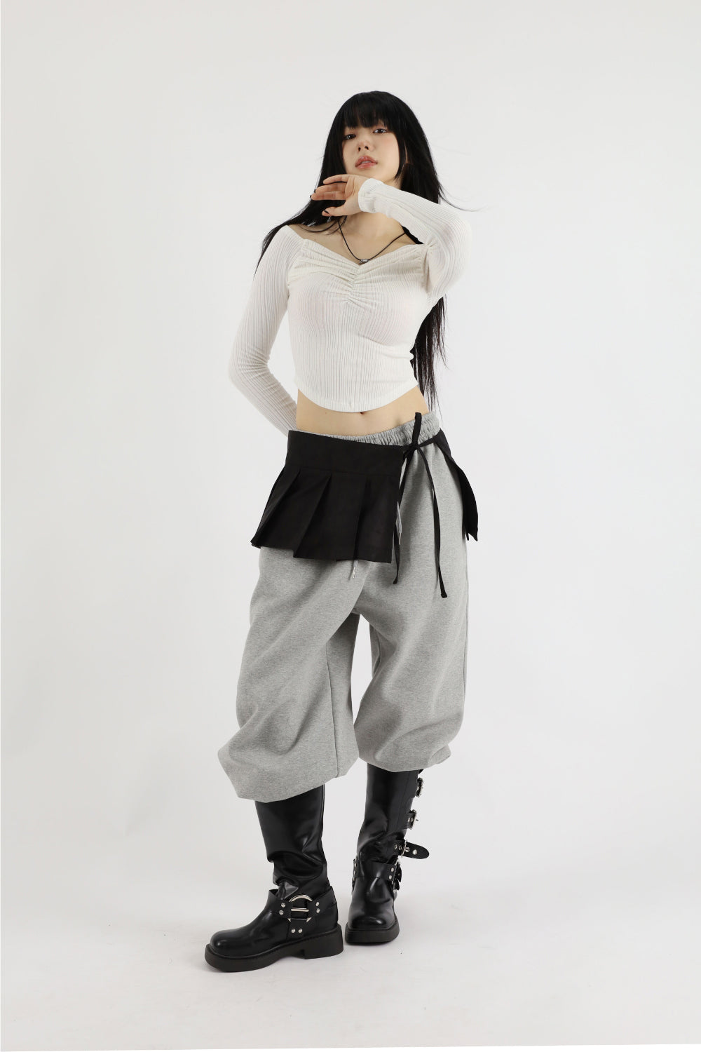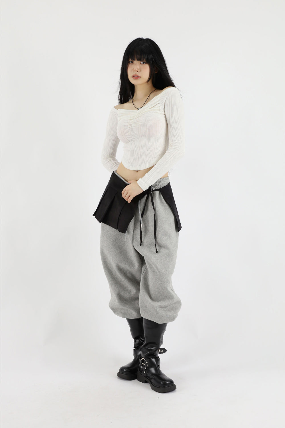 ユジェシャーリングクロップオフショルダーTシャツ