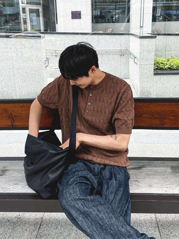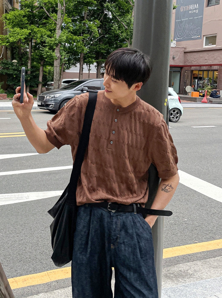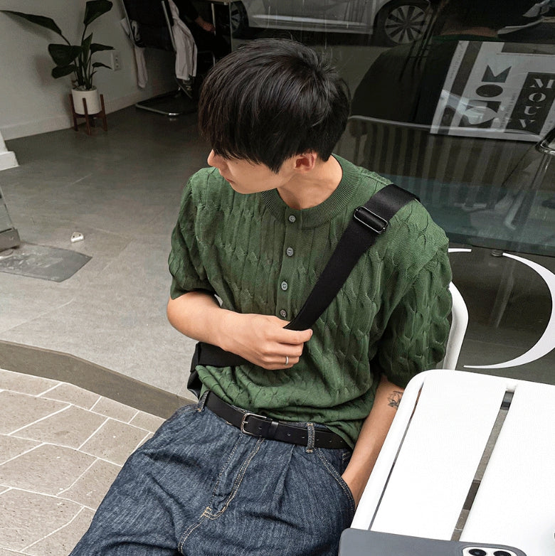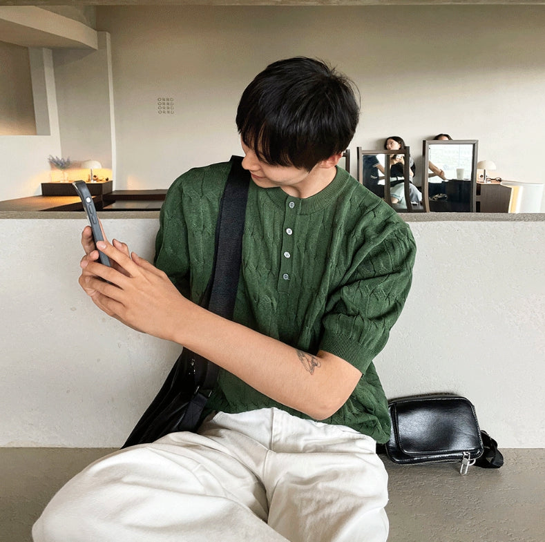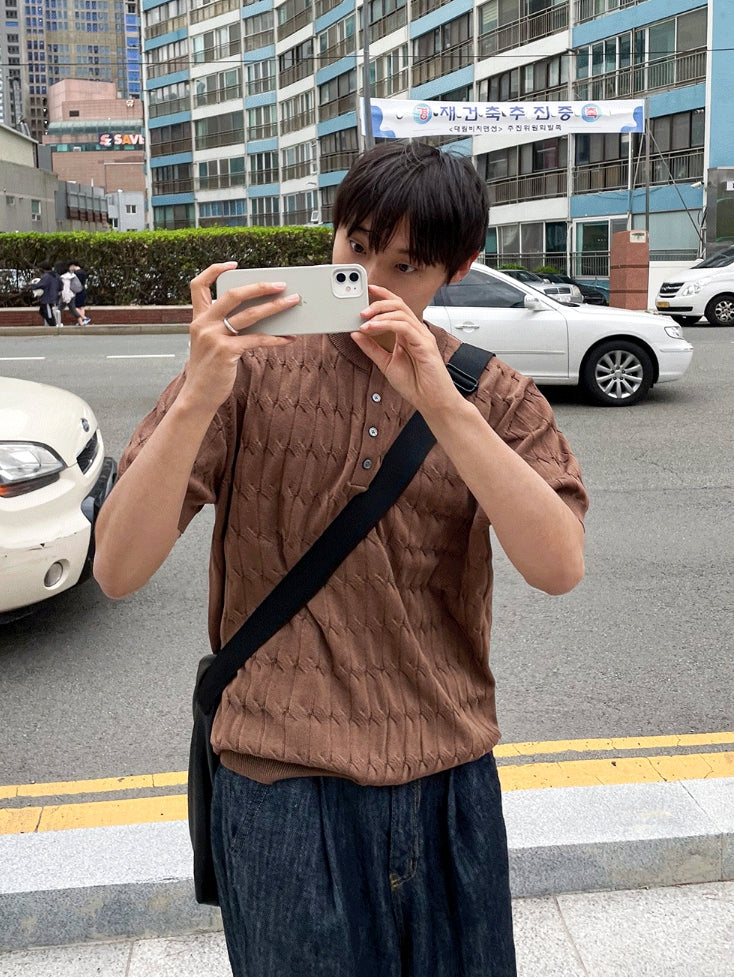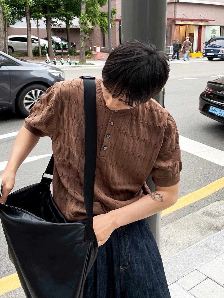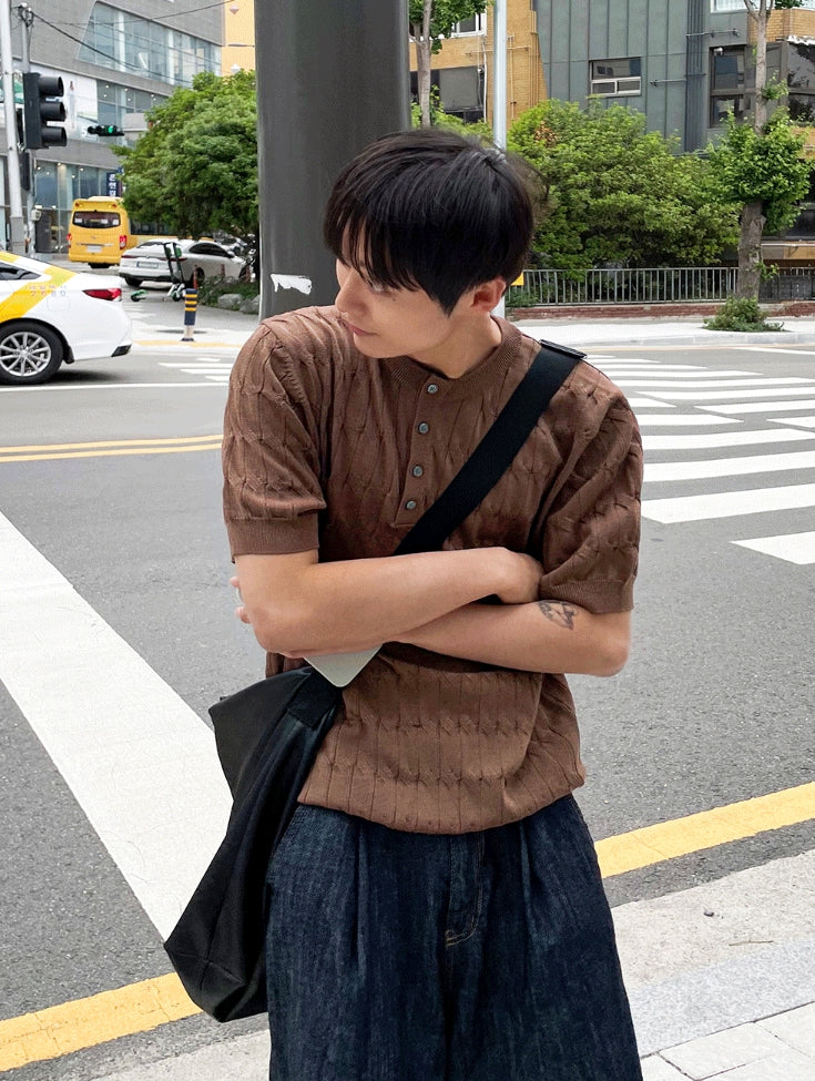 Cable knit short sleeve henry neck ver
