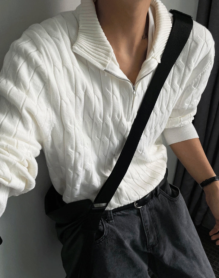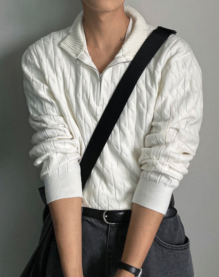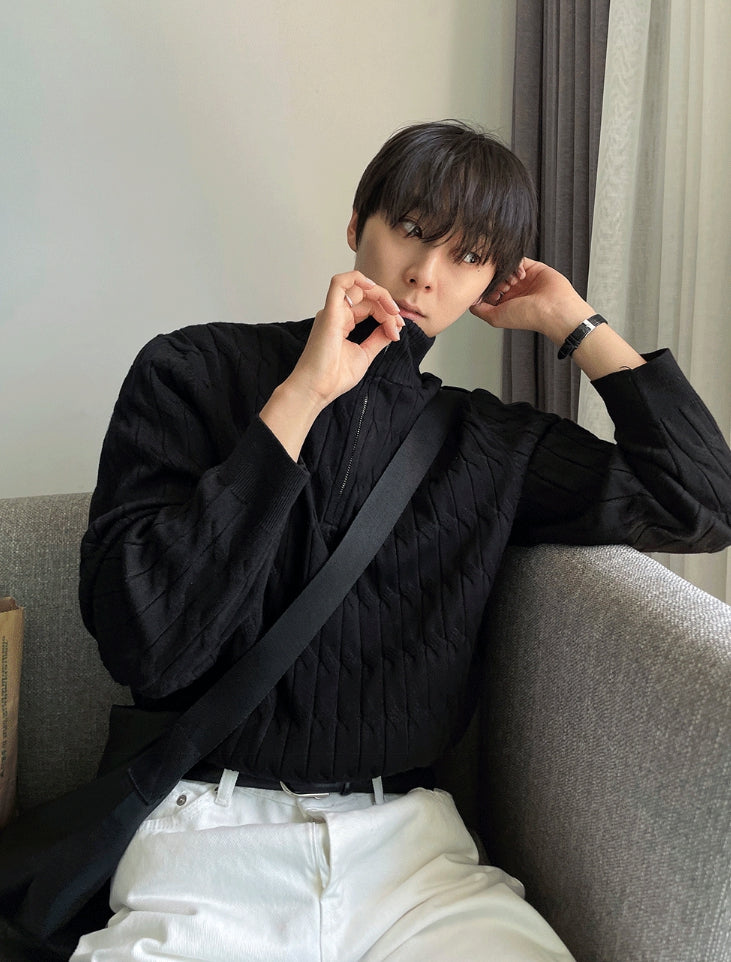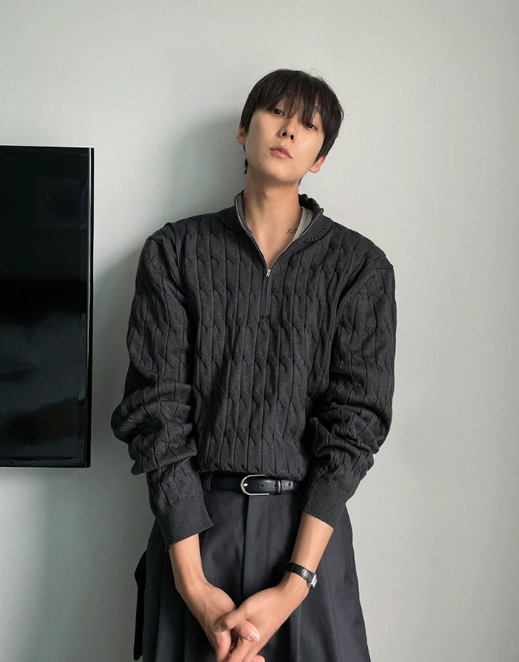 Cable long sleeve knit half zip up ver