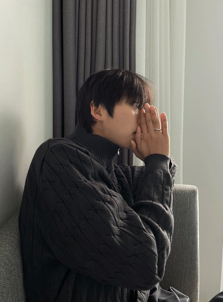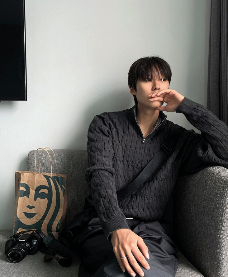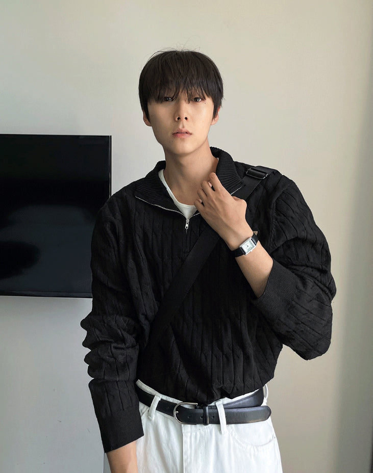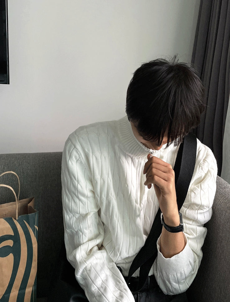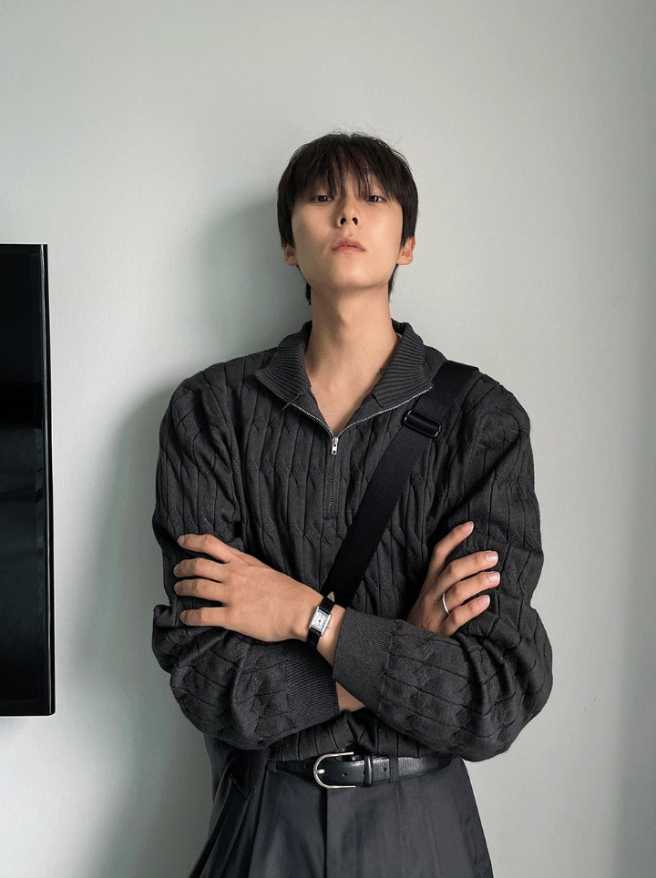 Cable long sleeve knit half zip up ver