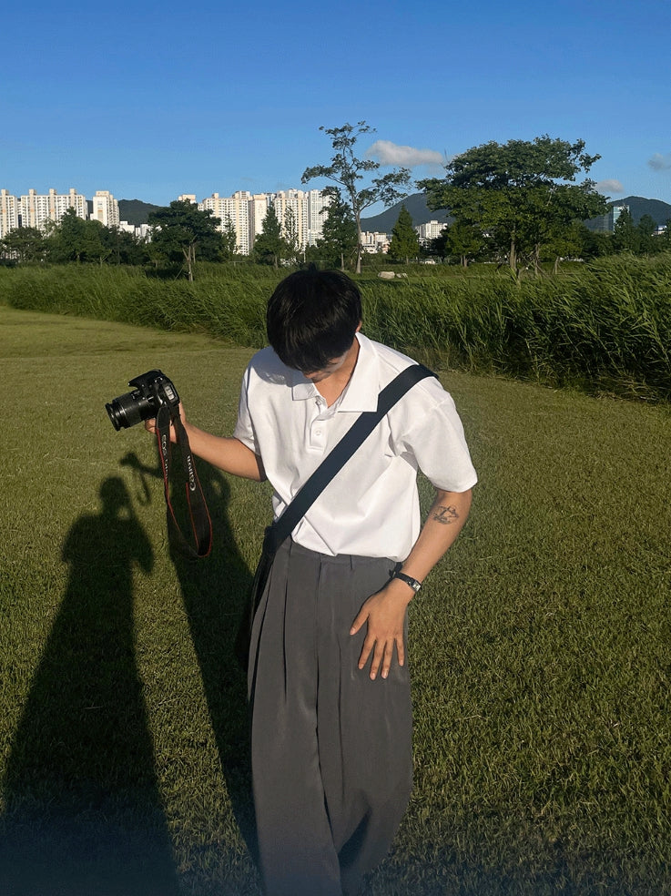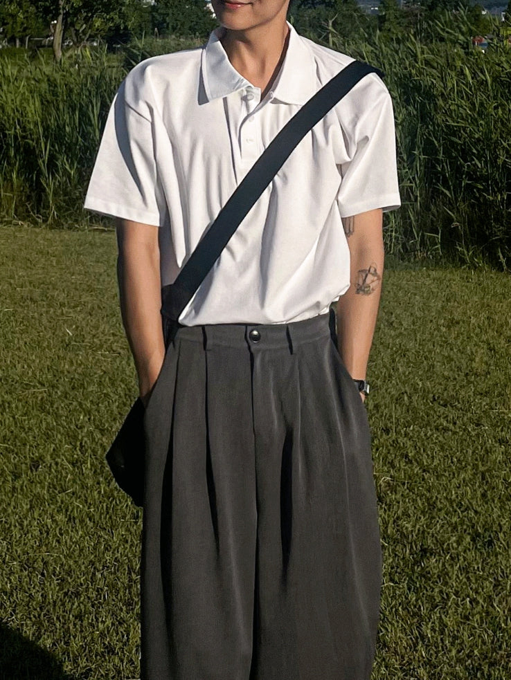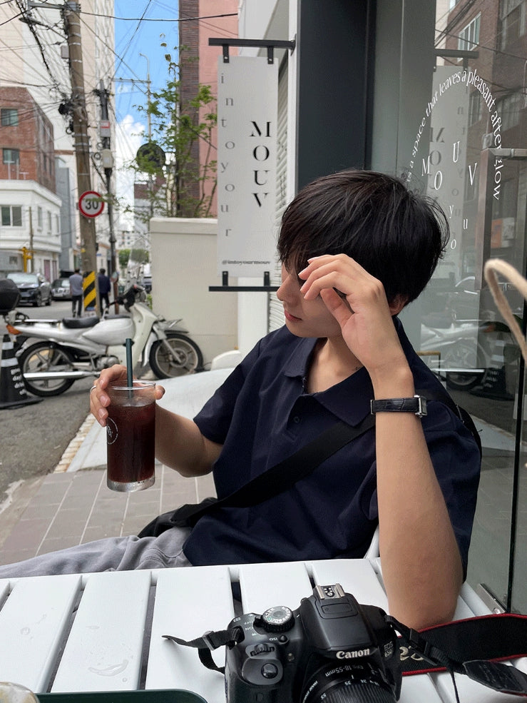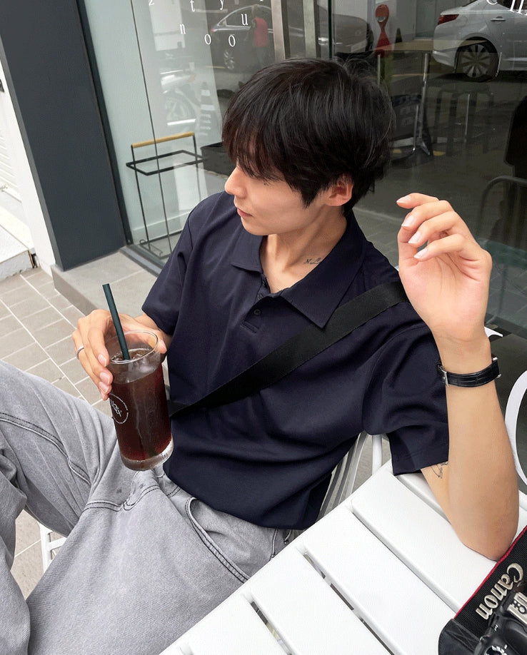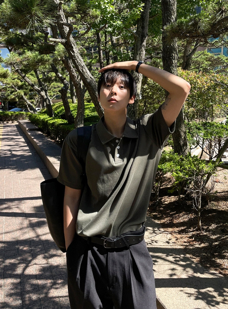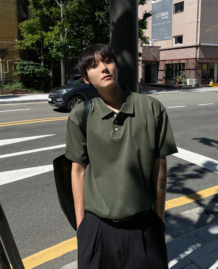 襟付きヘンリーネックブント半袖Tシャツ