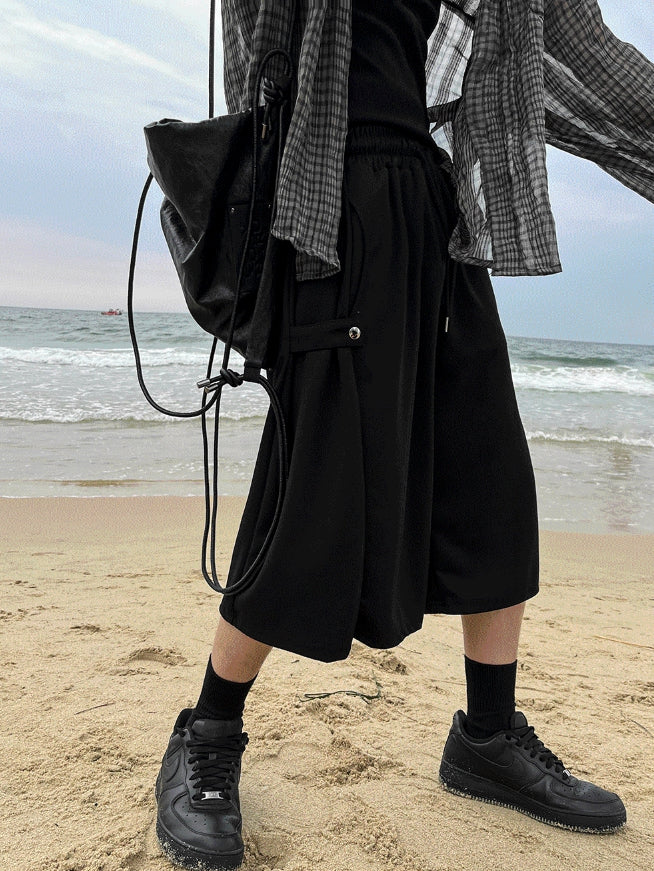 -ONE SIZE (ウエスト(ゴム)60 ヒップ- 股上33 股下31 もも周り70 裾周り76 総丈64)