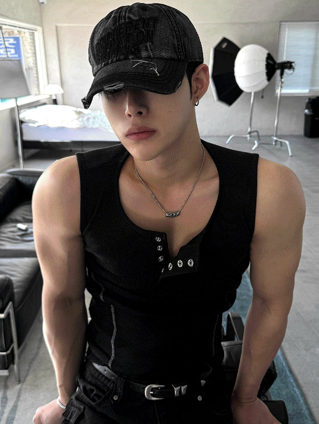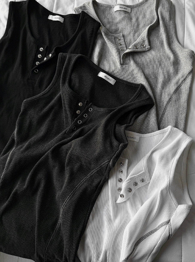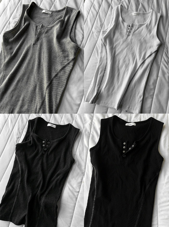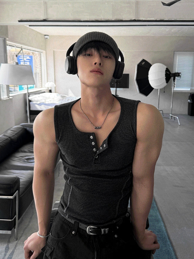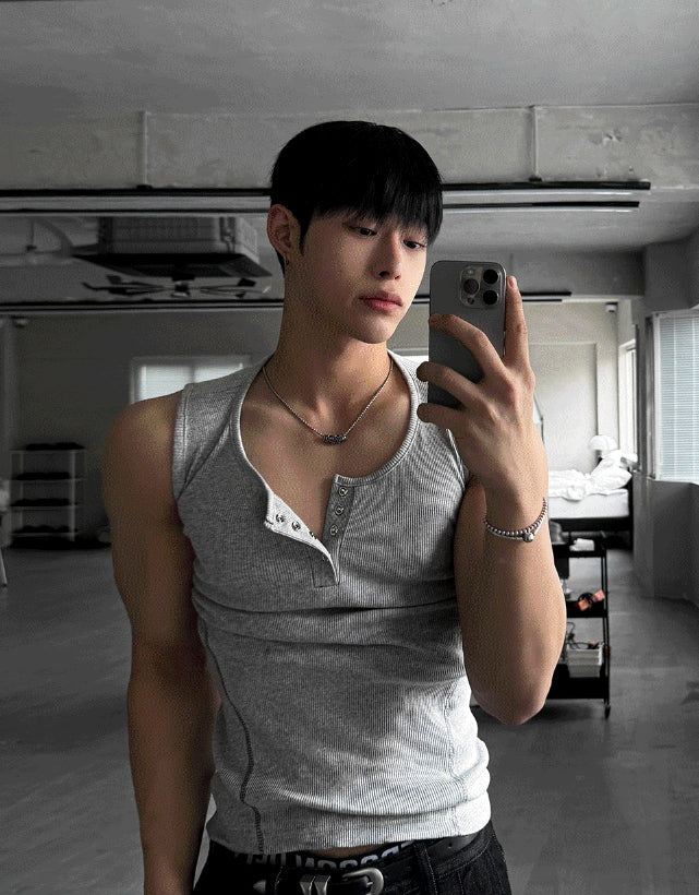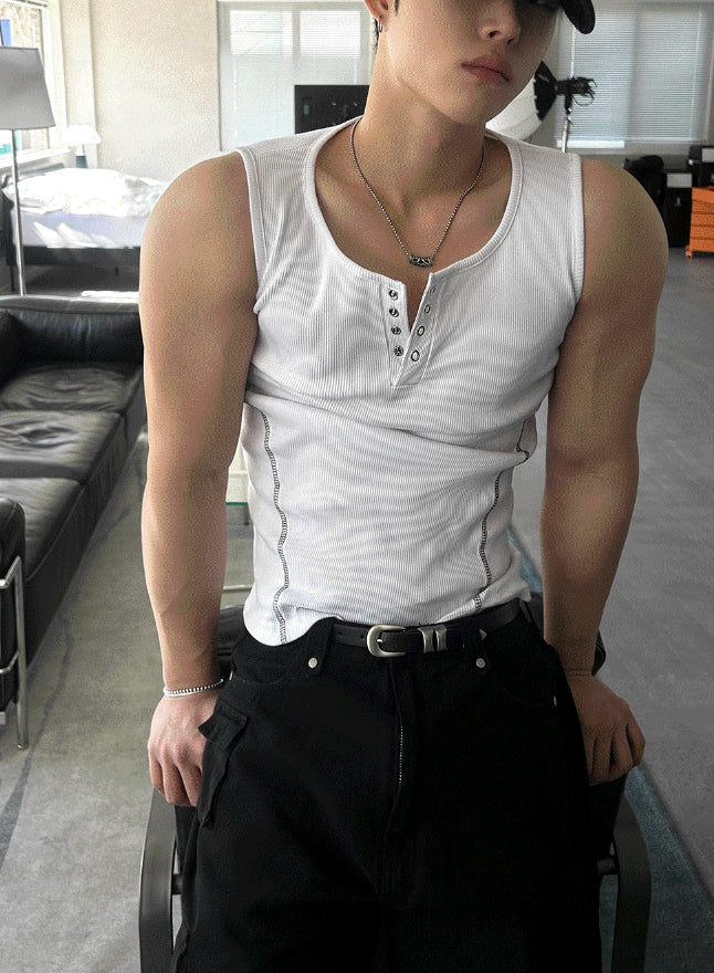 ヘンリーネックサイドトラックマッスルフィットタンクトップ