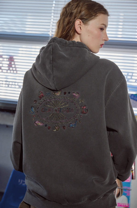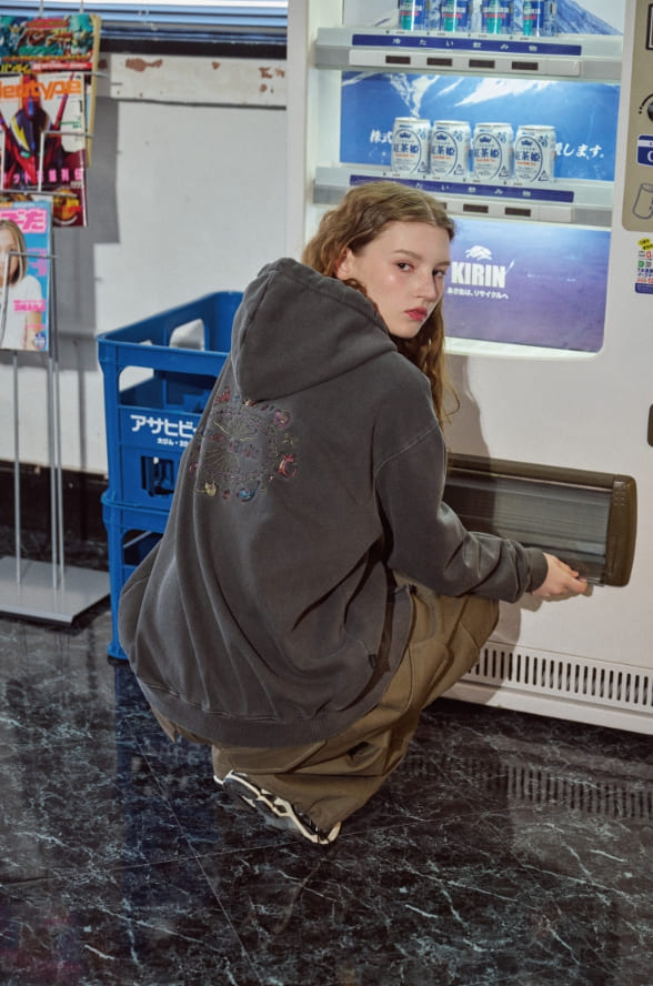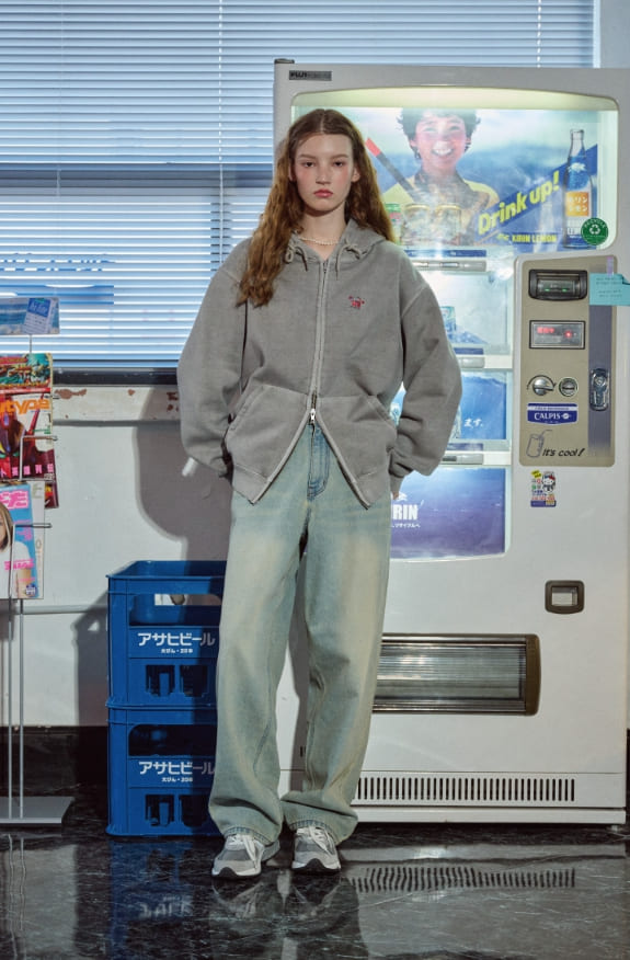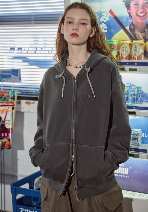 [2-WAY] Cat Stitch Pigment Hood Zip-Up