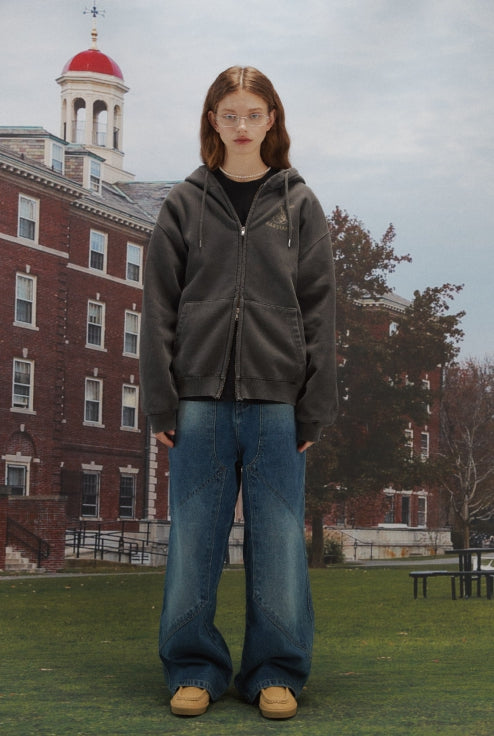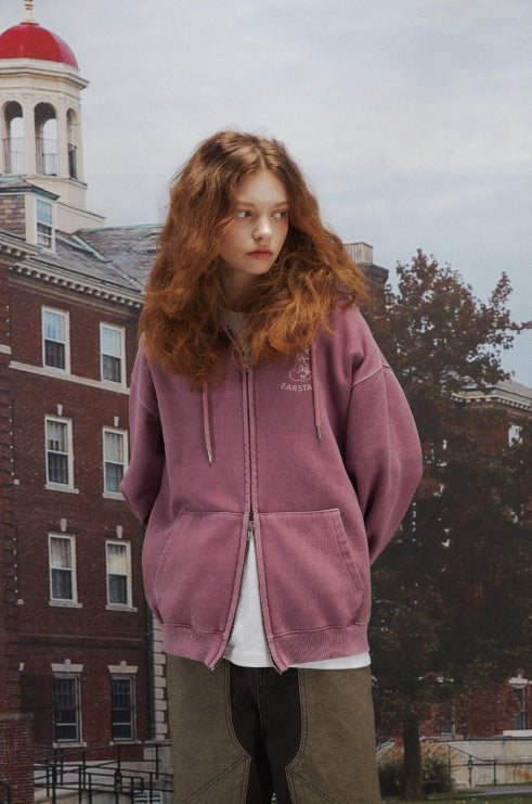 [2-WAY] Ear Stand Pigment Hood Zip-Up