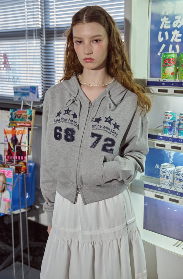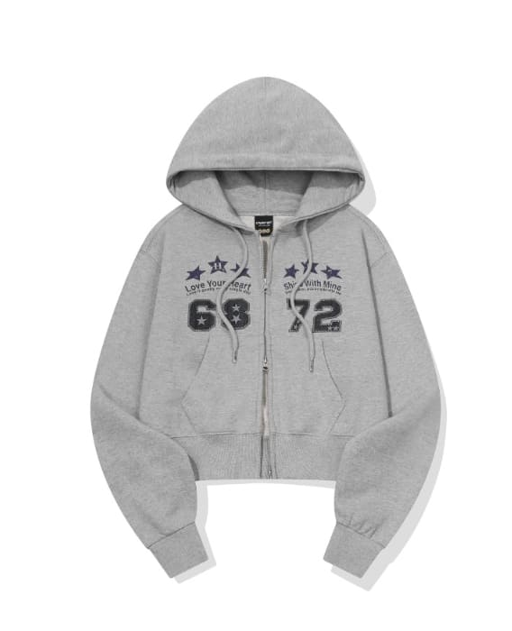 [2-WAY] Three Star CROP Hood Zip-Up