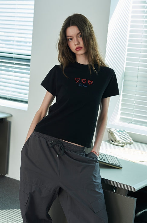 キャロラインチェーン刺繍クロップ半袖Tシャツ