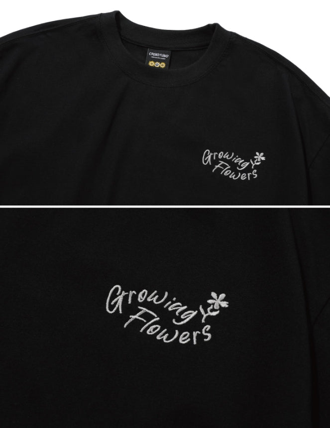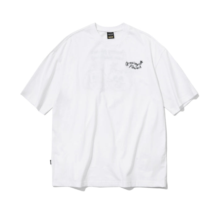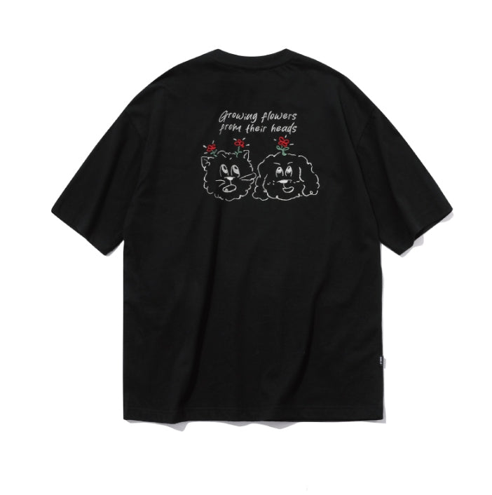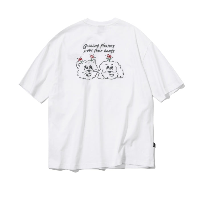 Cat Puppy Flower Embroidery Short Sleeve Tee