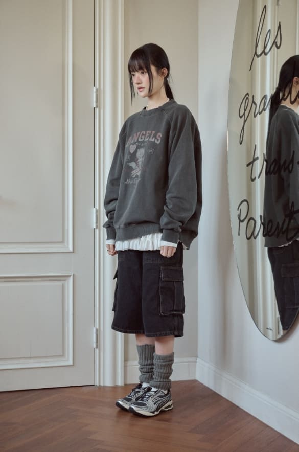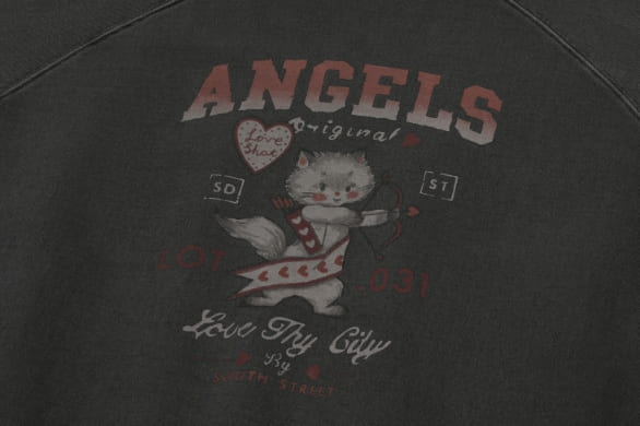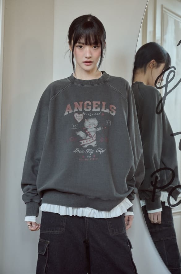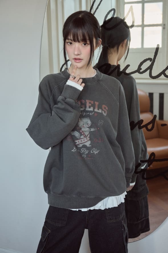キューピッドキャットラグランピグメントスウェットシャツ