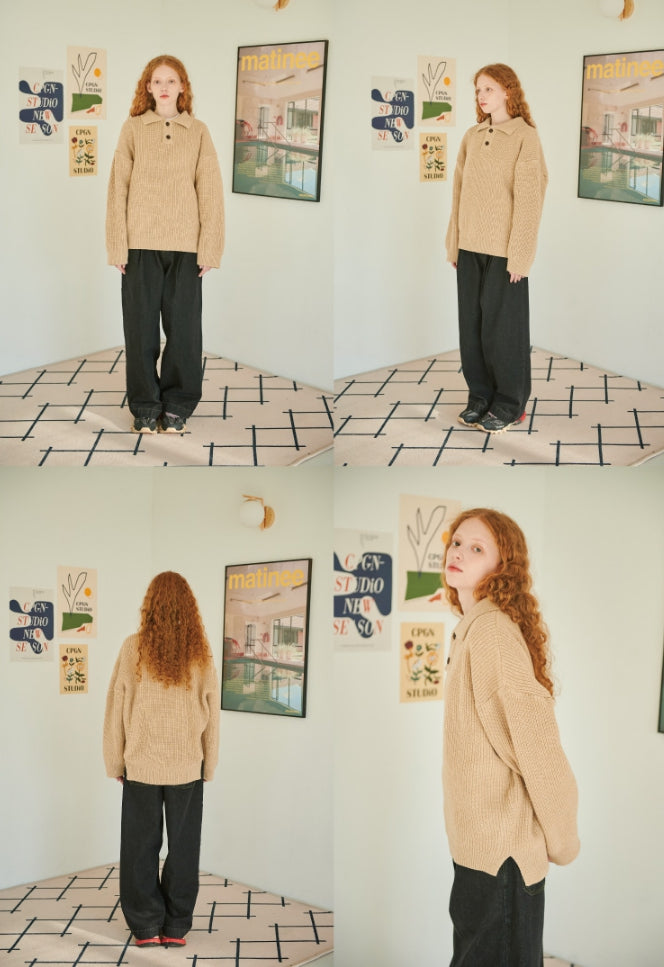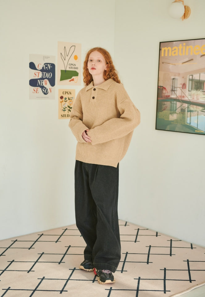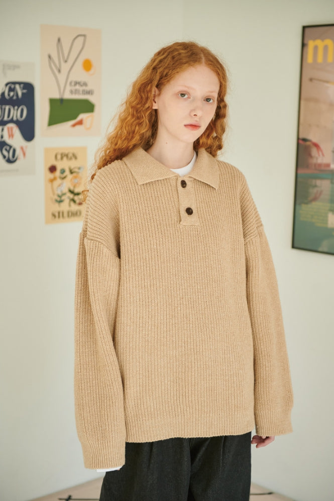 ヘビーオーバーフィットプルオーバーカラーセーター