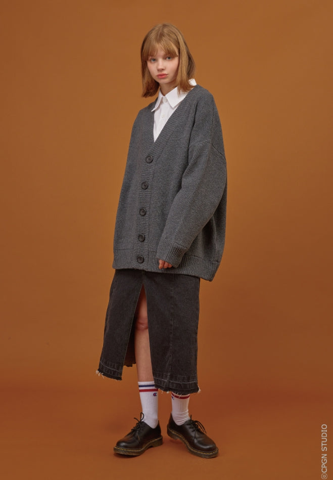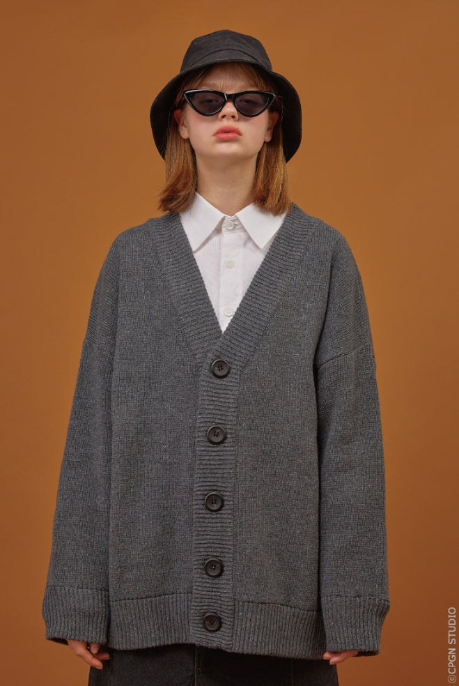 Heavy Overfit Rams Wool Cardigan