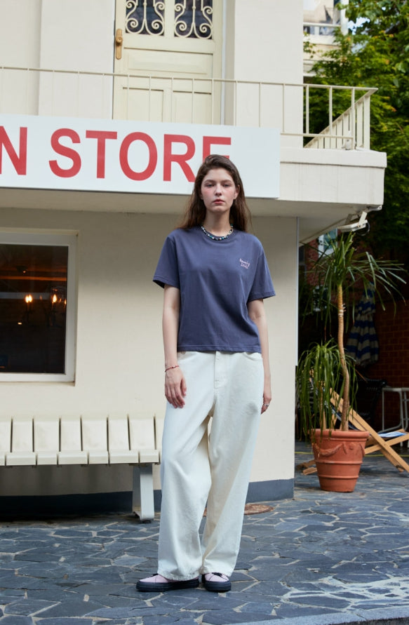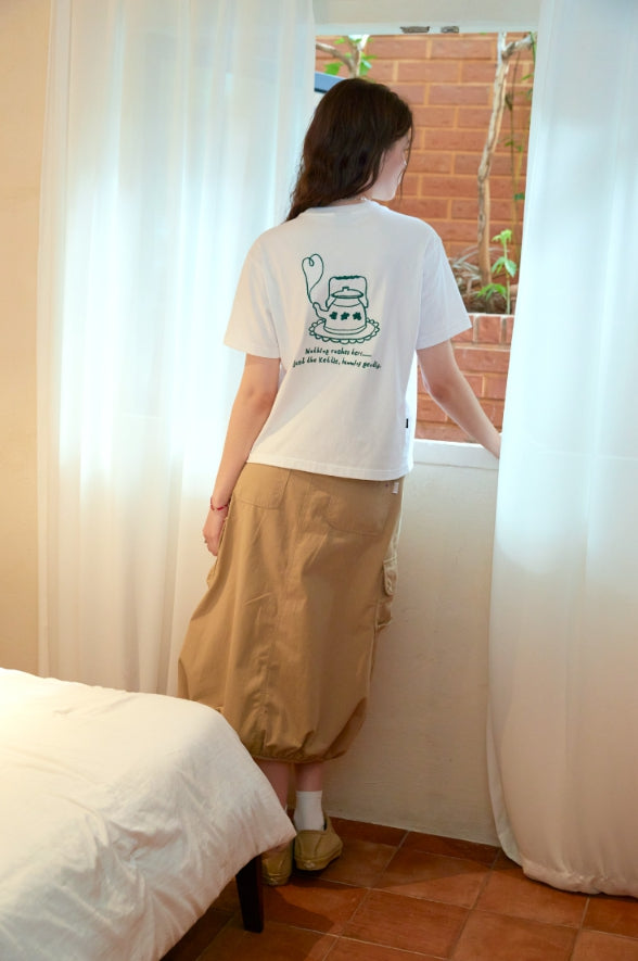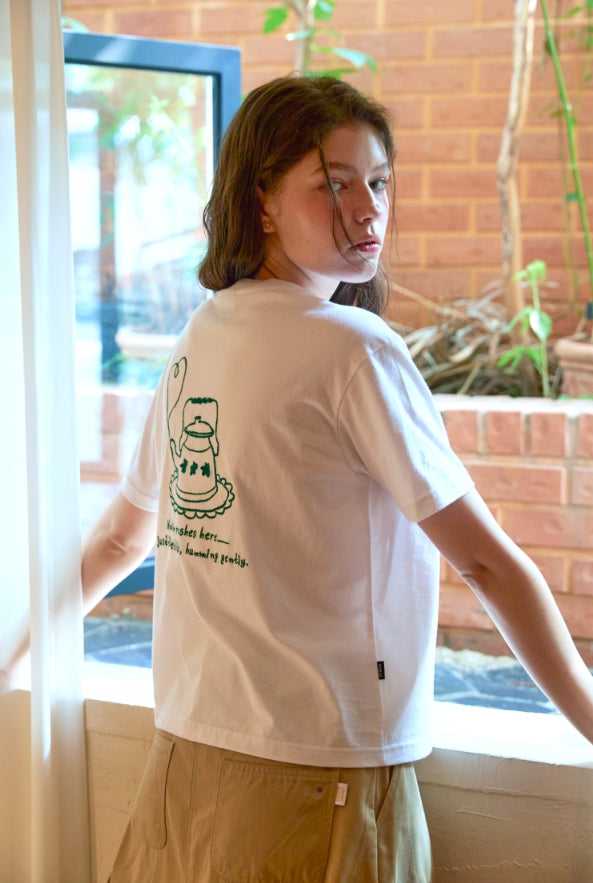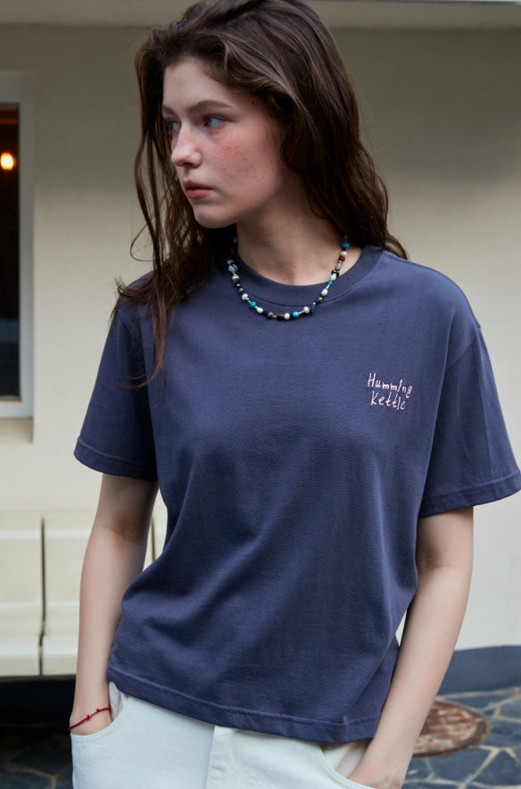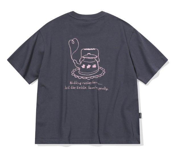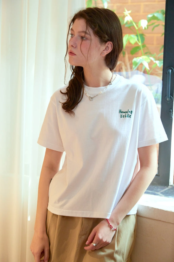 Humming Kettle Embroidery CROP Short Sleeve Tee