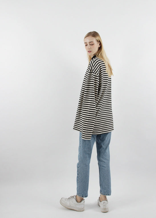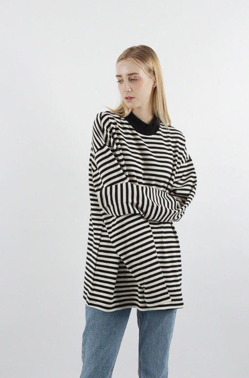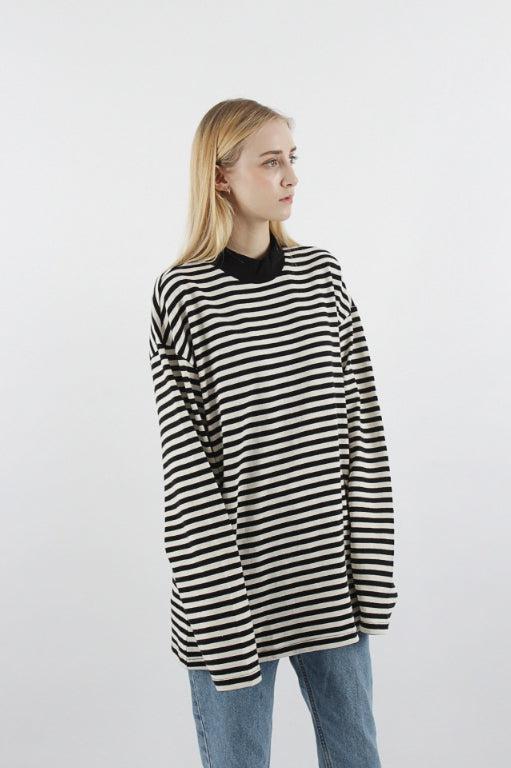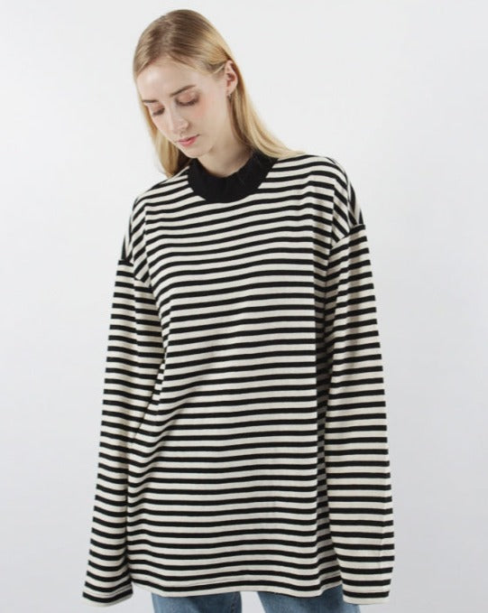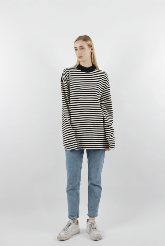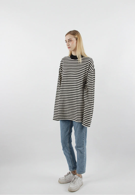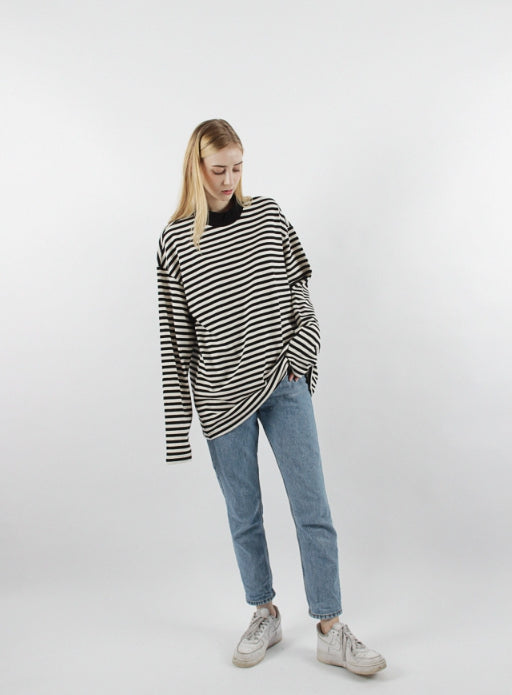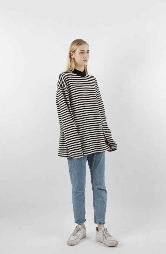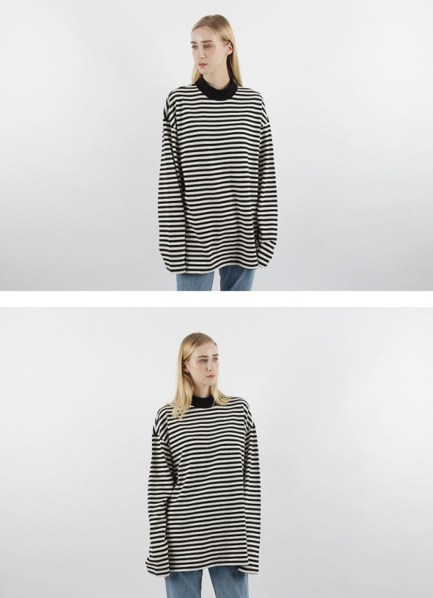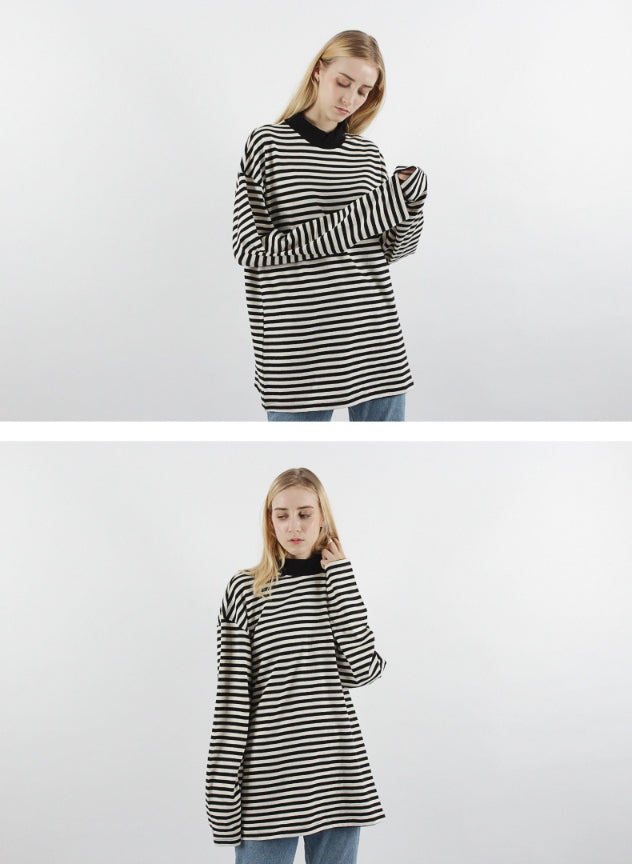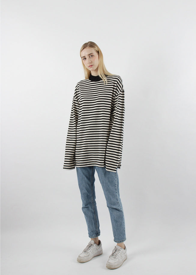 Longsleeve Heavy Overfit Stripe Half Turtleneck