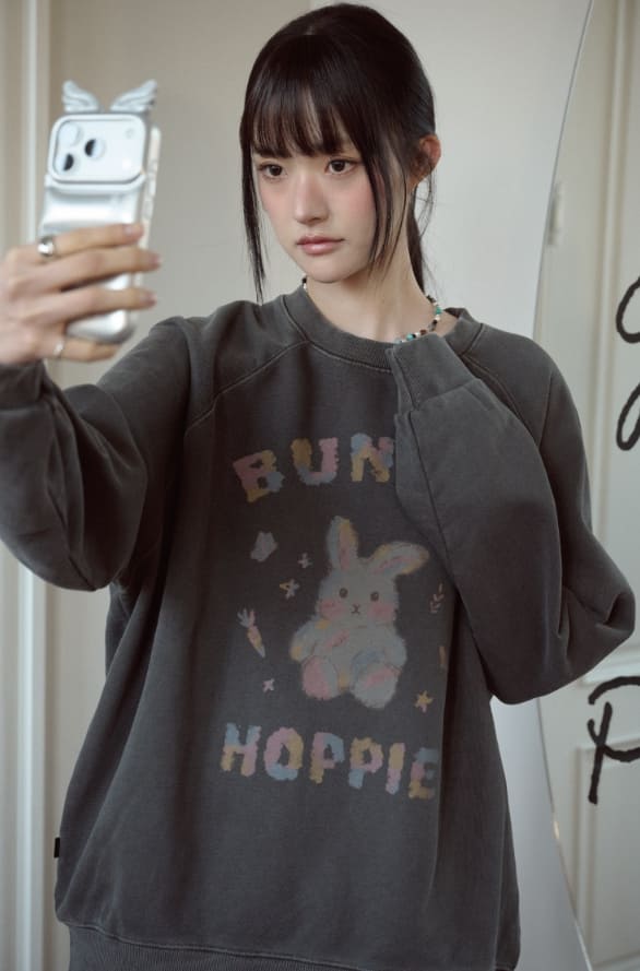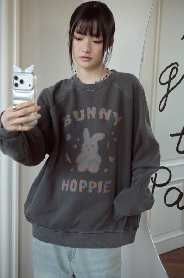 パステルバニーラグランピグメントスウェットシャツ
