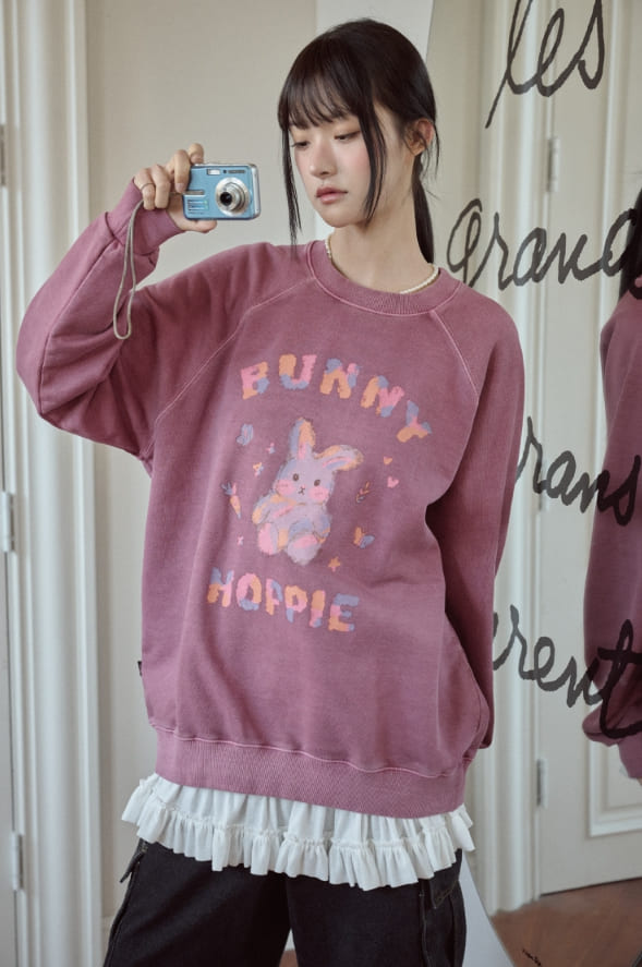 Pastel Bunny Raglan Pigment Sweatshirt