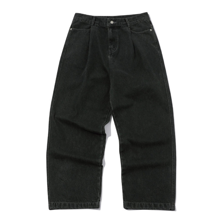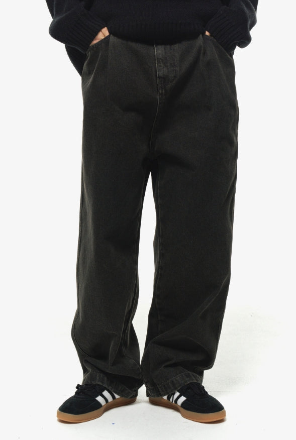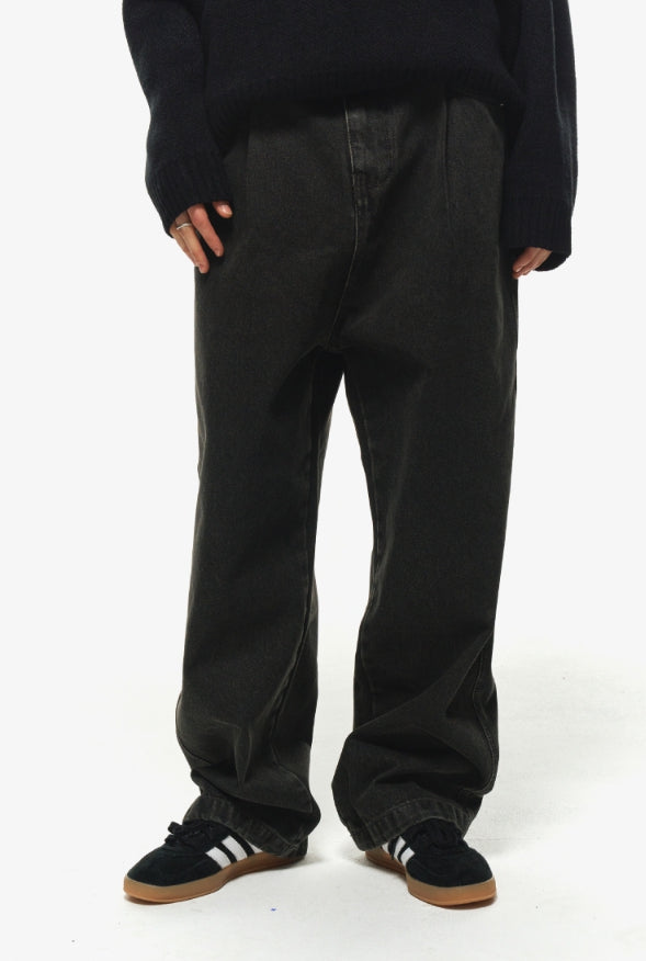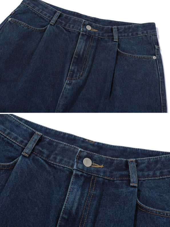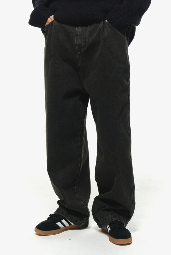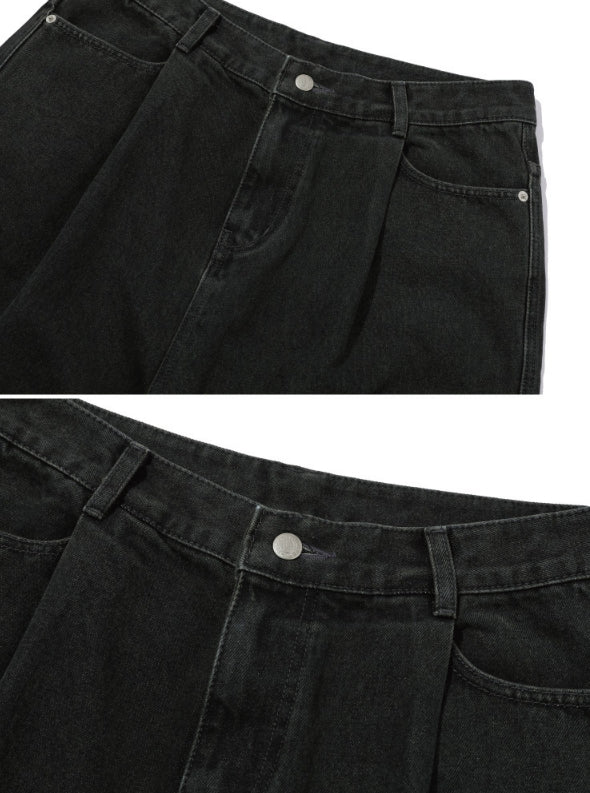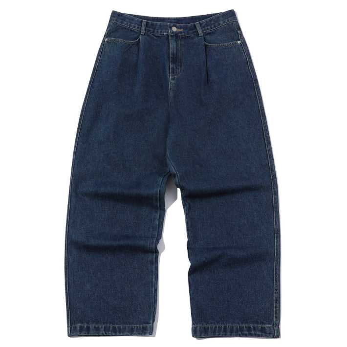 Wide one tuck denim pants