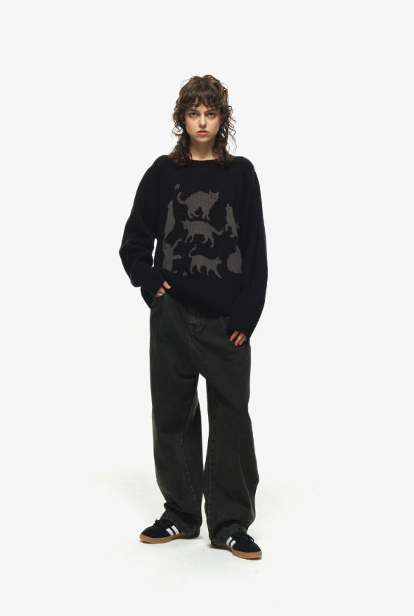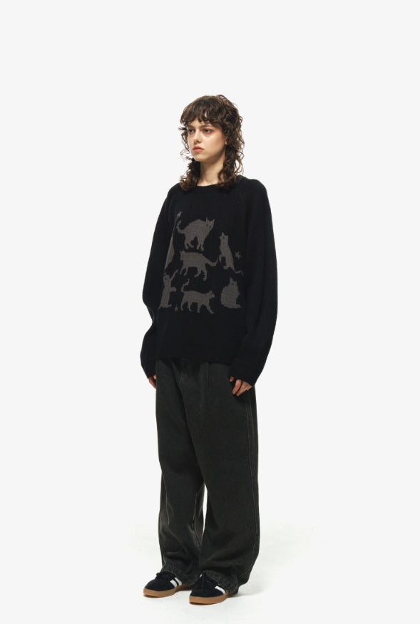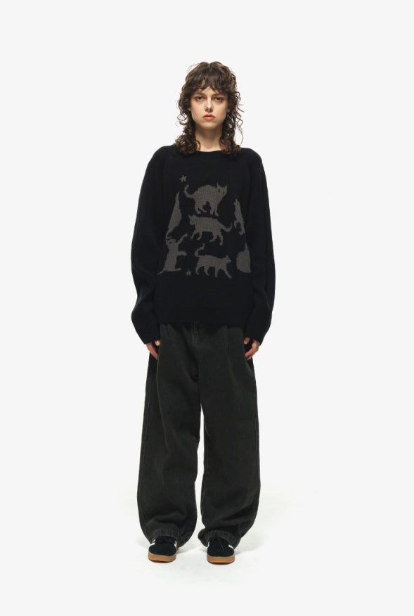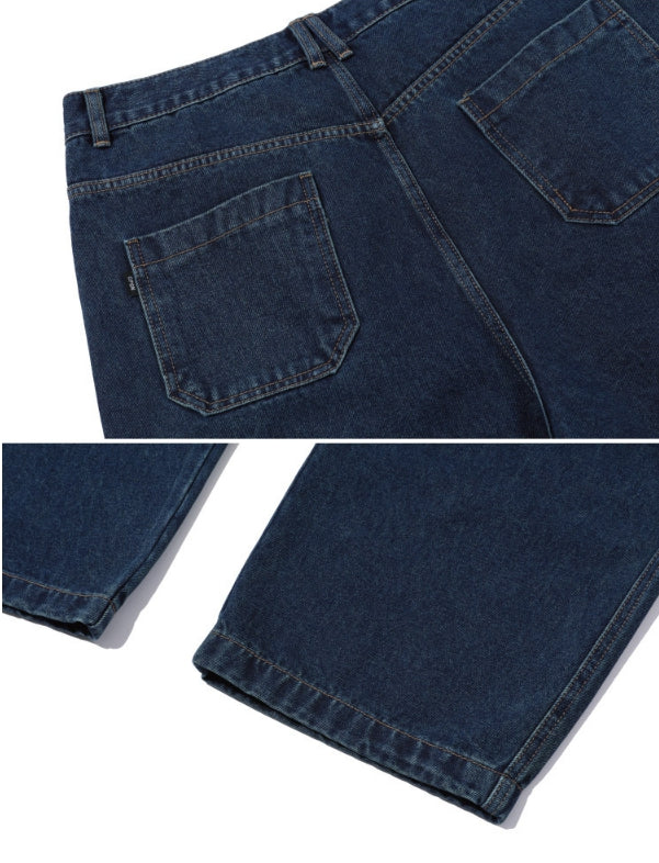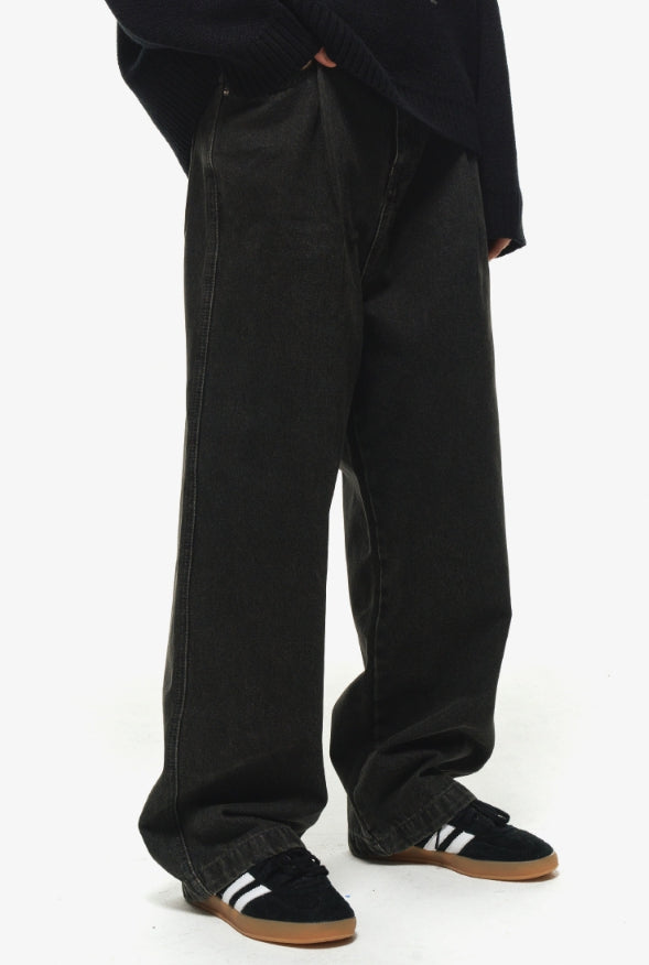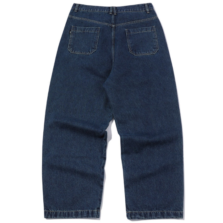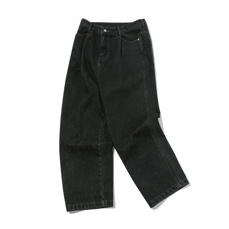 Wide one tuck denim pants