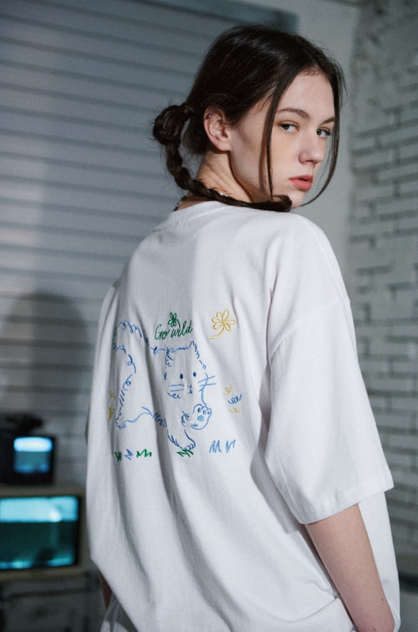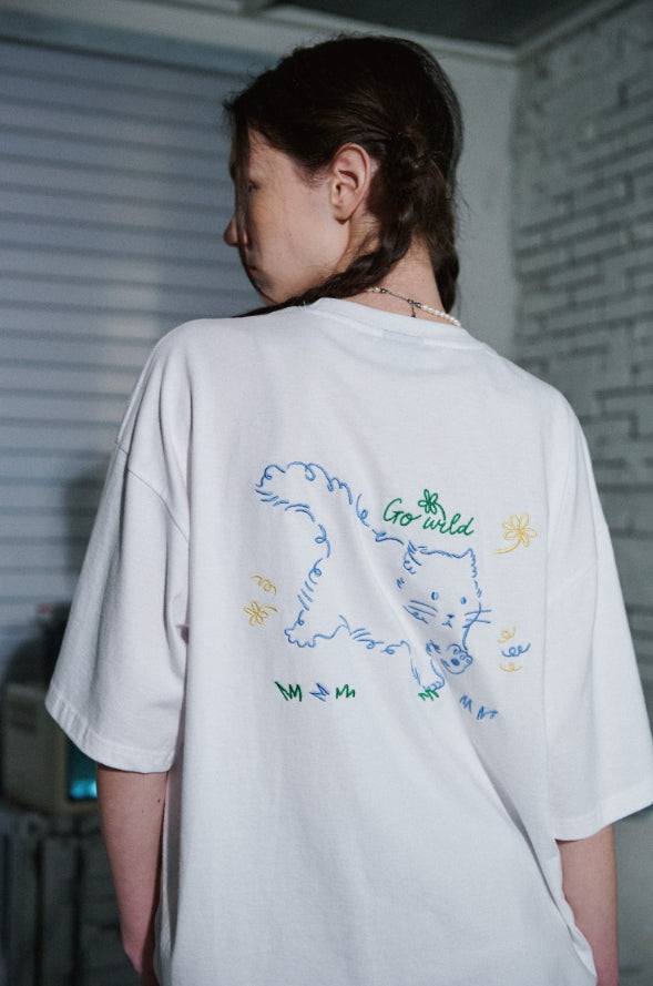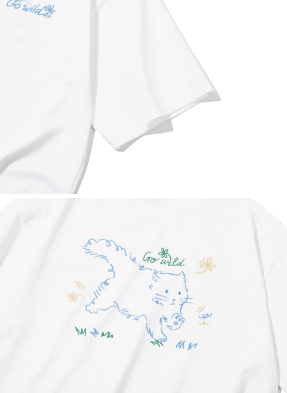 Wild Cat Embroidery Short Sleeve T-shirt