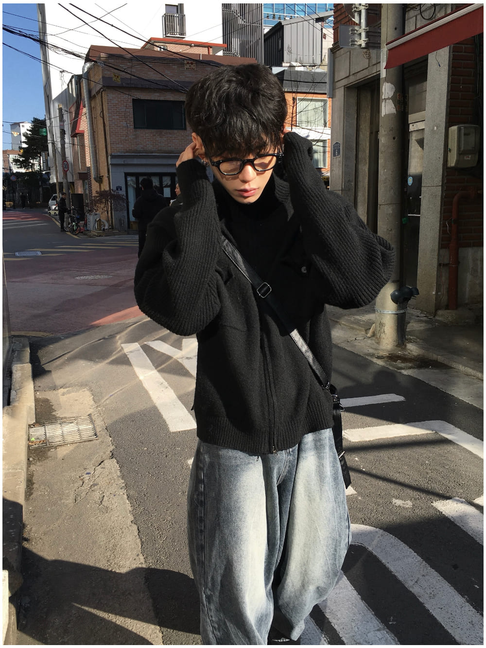 バイウォンフラップハイネックニットジップアップ