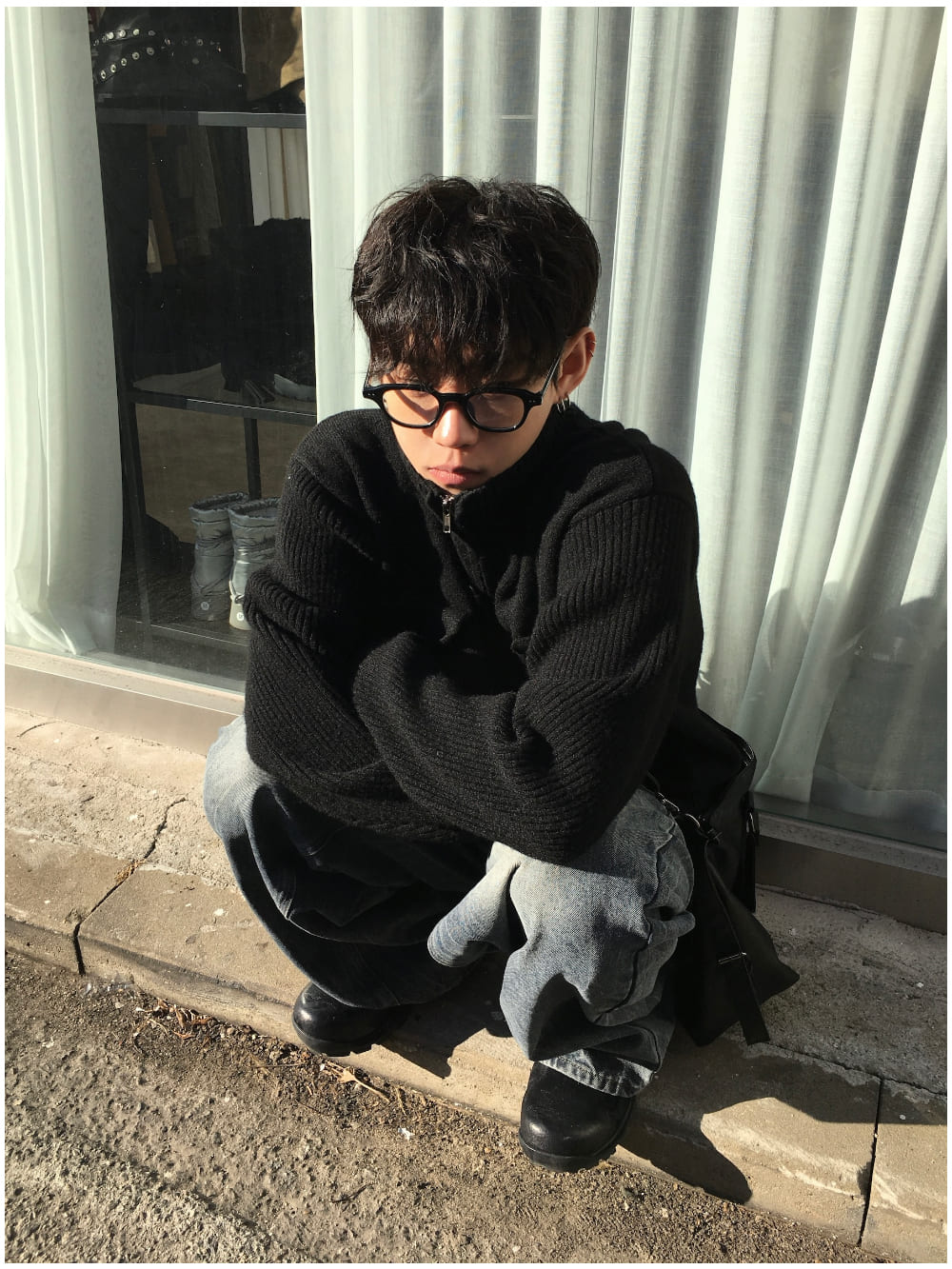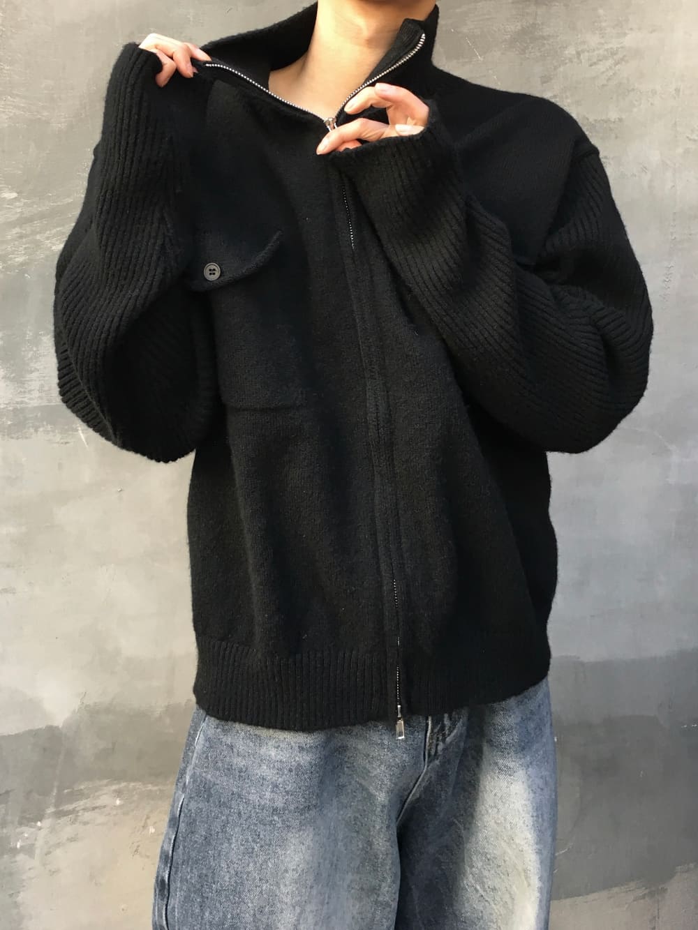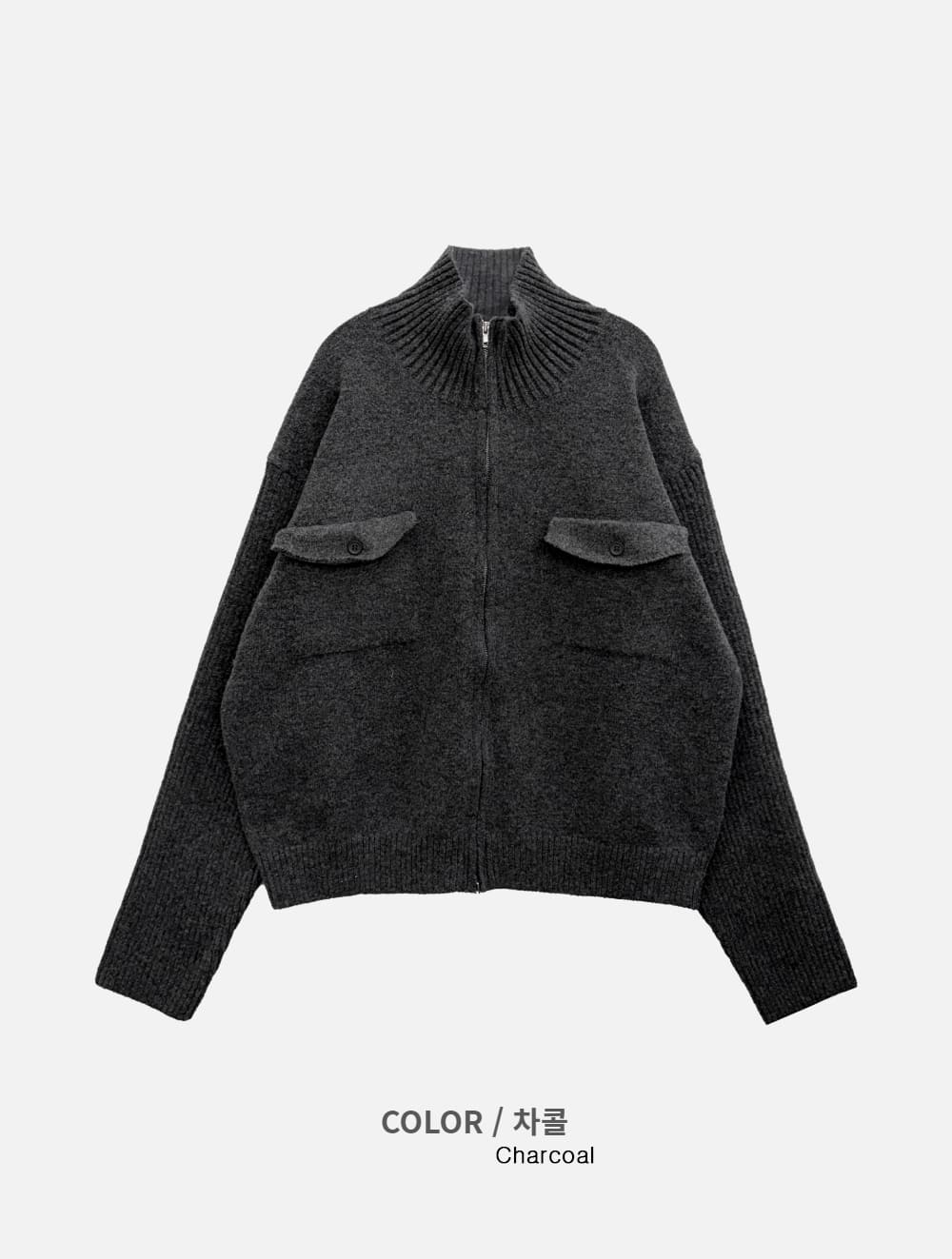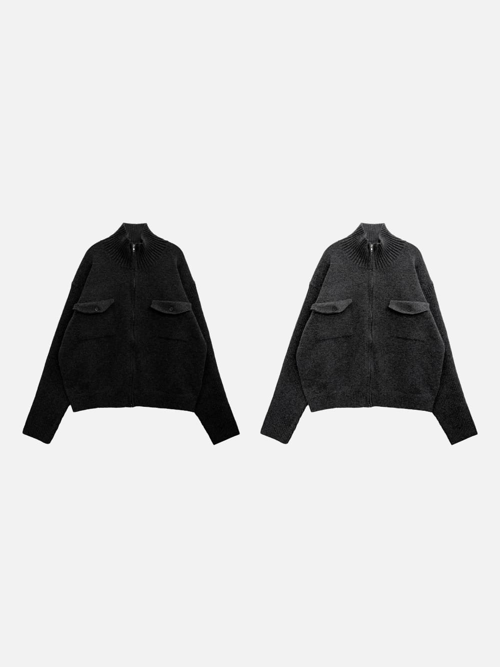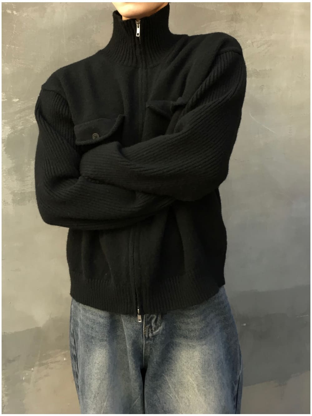 Baiwon Flap High Neck Knit Zip-Up