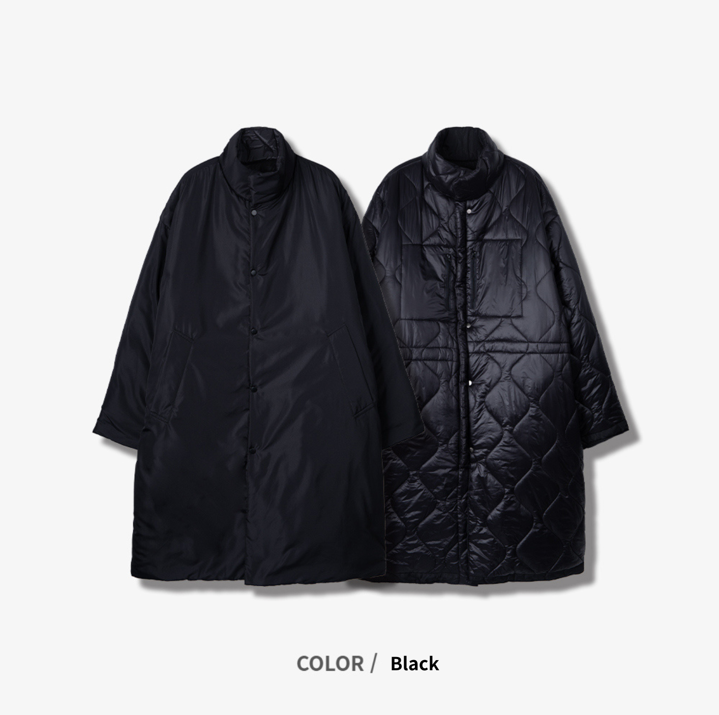 クロムリバーシブルキルティングロングパーカ