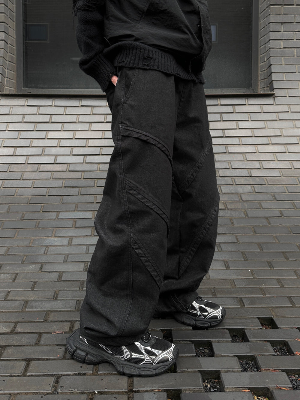 エクルーラインオブリークデニムジーンズ