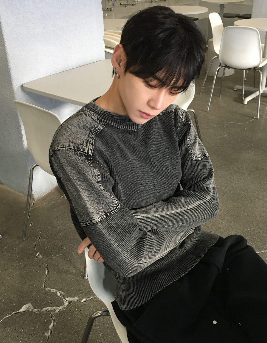 ファインショルダーパネルウォッシュ加工長袖Tシャツ