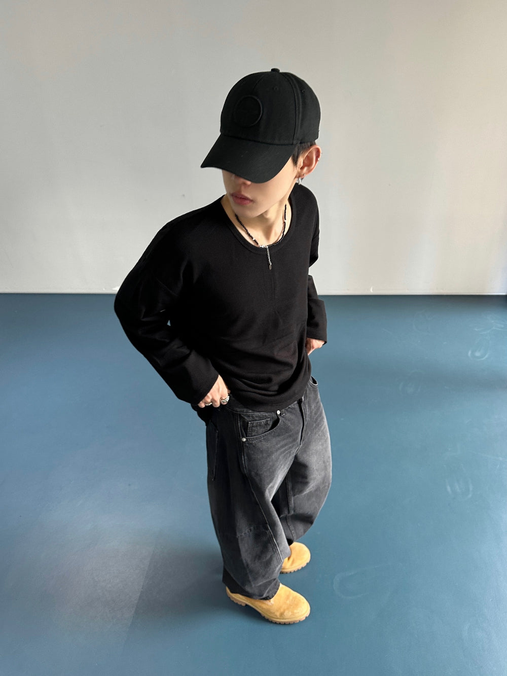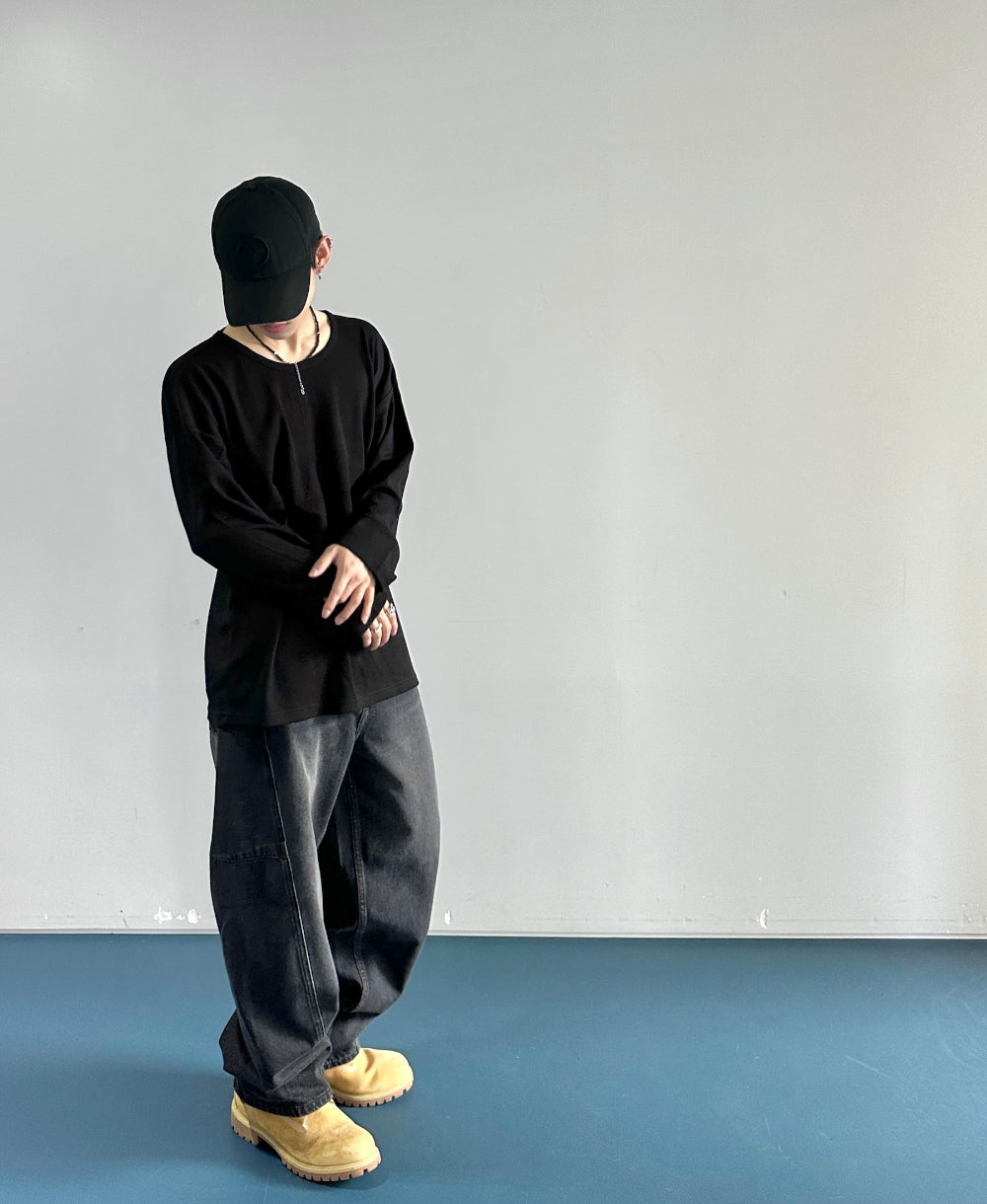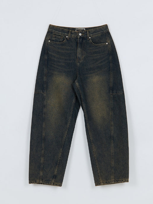 ケールソルトウォッシュ加工裏起毛バルーンデニムパンツ