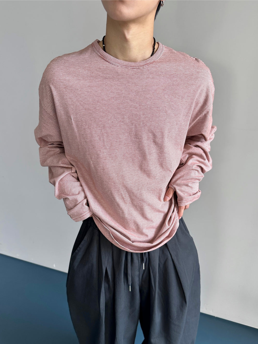 ラウンドボーダーウォーマー長袖Tシャツ